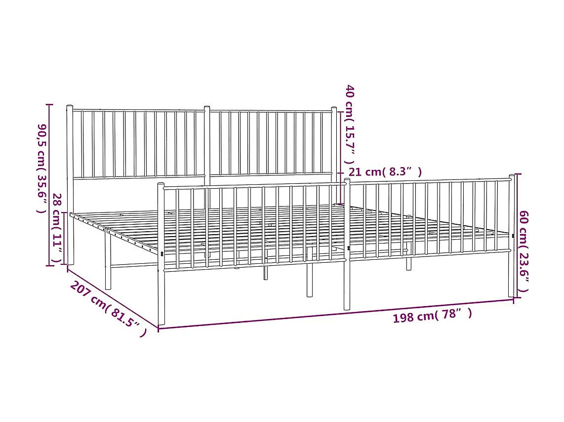 Cadre de lit métal avec tête de lit blanc 193x203 cm