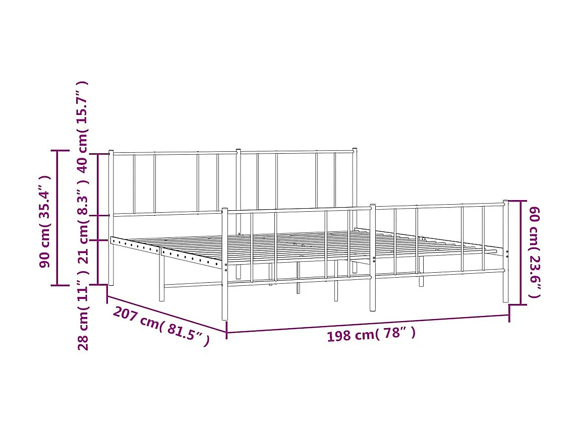 Lit double | Lit adulte | Cadre de lit métal et pied de lit blanc 193x203 cm
