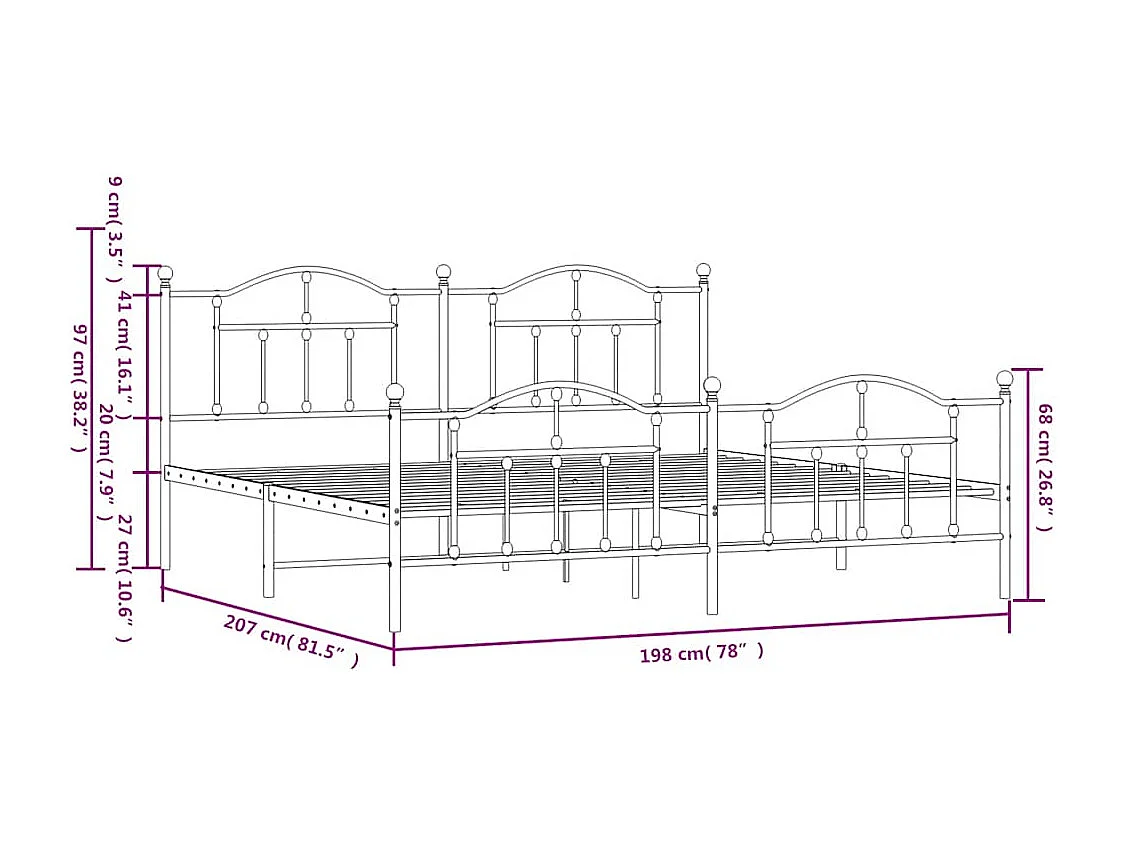 Lit double | Lit adulte | Cadre de lit métal et pied de lit blanc 193x203 cm