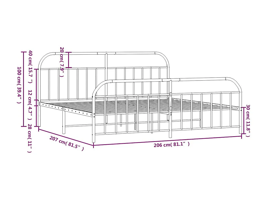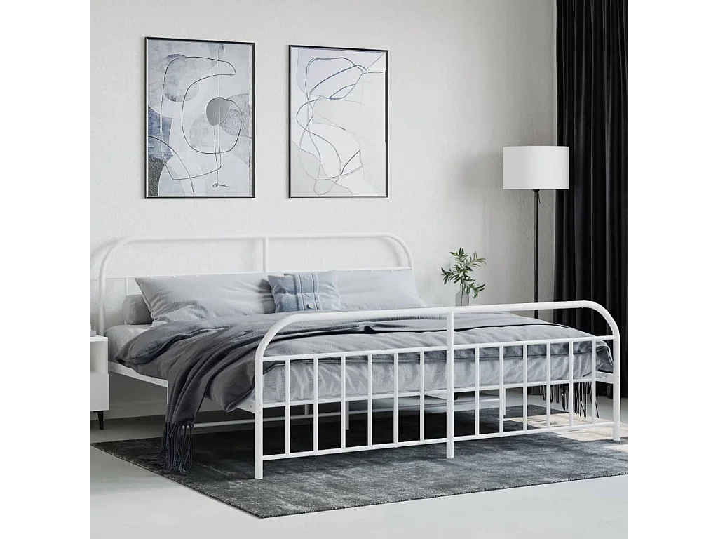 Lit double | Lit adulte | Cadre de lit métal et pied de lit blanc 200x200 cm