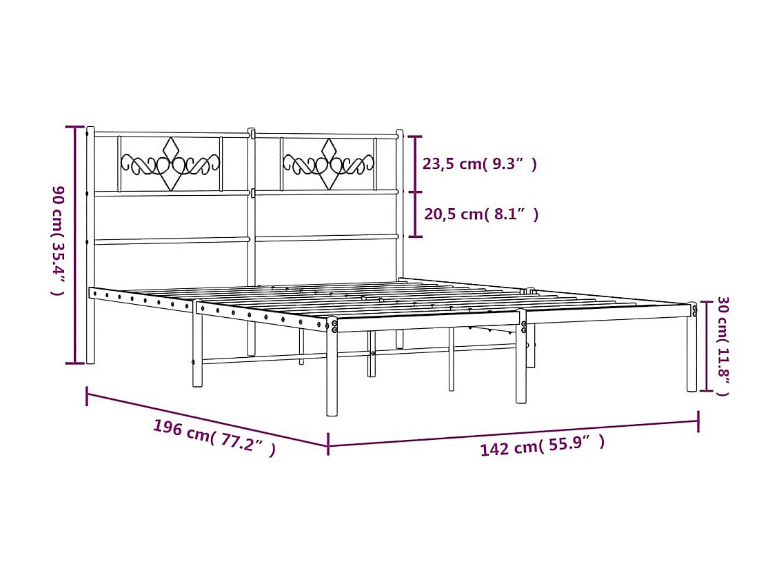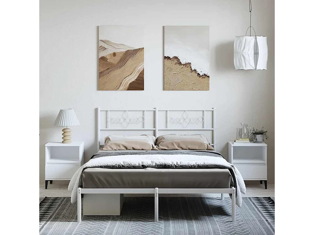 Lit double | Lit adulte | Cadre de lit métal et tête de lit blanc 135x190 cm