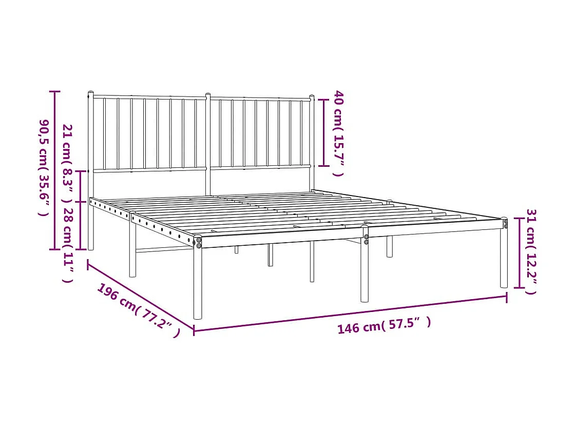 Cadre de lit métal avec tête de lit blanc 140x190 cm