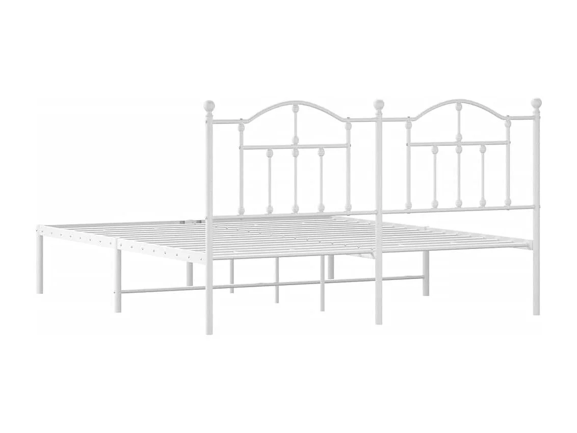 Lit double | Lit adulte | Cadre de lit métal et tête de lit blanc 160x200 cm