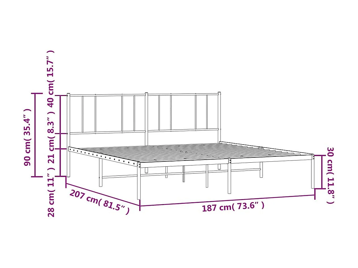 Lit double | Lit adulte | Cadre de lit métal et pied de lit blanc 183x213 cm