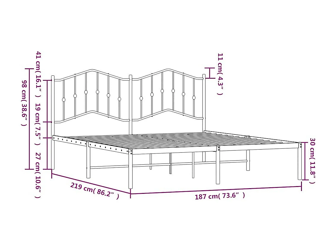 Cadre de lit métal avec tête de lit-pied de lit blanc 183x213