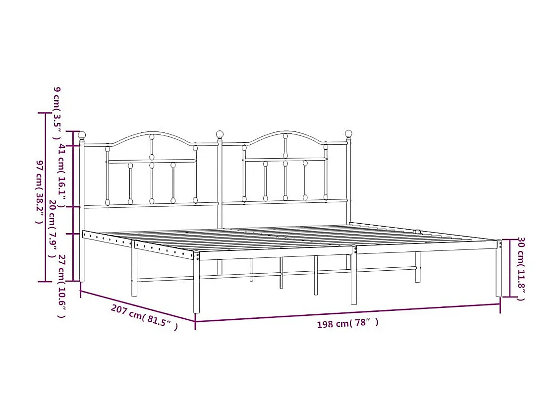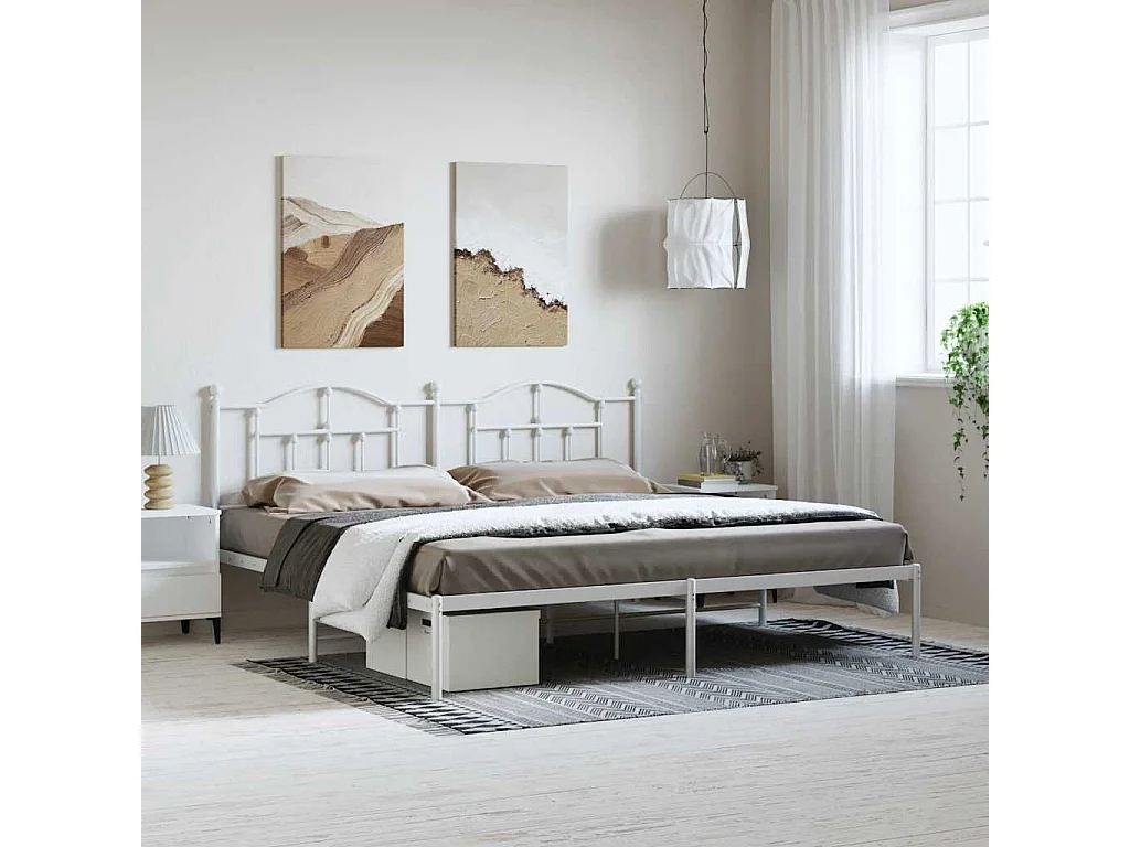 Lit double | Lit adulte | Cadre de lit métal et tête de lit blanc 193x203 cm