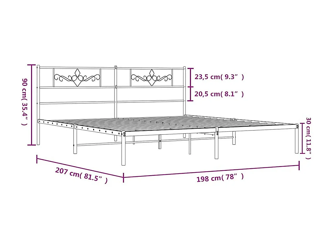 Lit-193x203 cm métal + tête de lit/pied de lit blanc HOQW82522