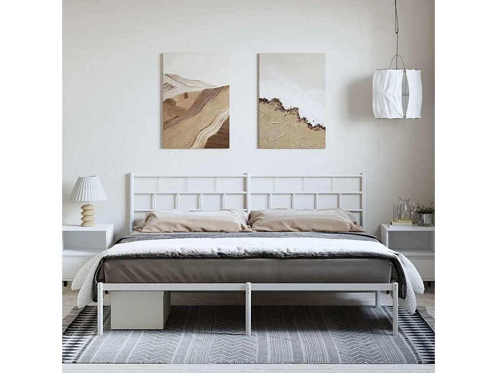 Cadre de lit métal avec tête de lit/pied de lit blanc 193x203cm