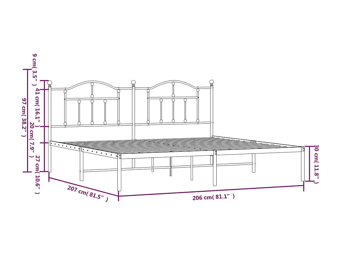 Lit double | Lit adulte | Cadre de lit métal et tête de lit blanc 200x200 cm