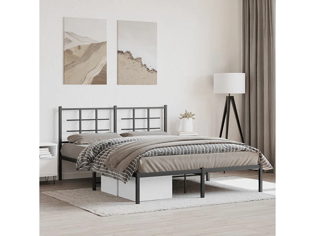 Lit double | Lit adulte | Cadre de lit métal et tête de lit noir 160x200 cm