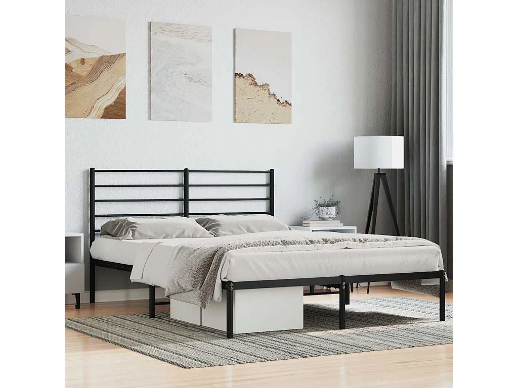 Lit double | Lit adulte | Cadre de lit métal et tête de lit noir 160x200 cm