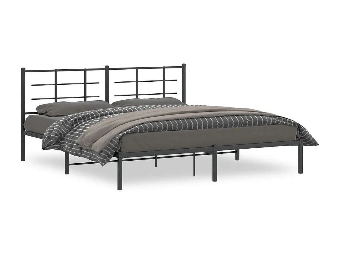 Lit double | Lit adulte | Cadre de lit métal et tête de lit noir 180x200 cm