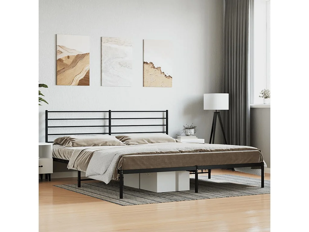Lit double | Lit adulte | Cadre de lit métal et tête de lit noir 180x200 cm