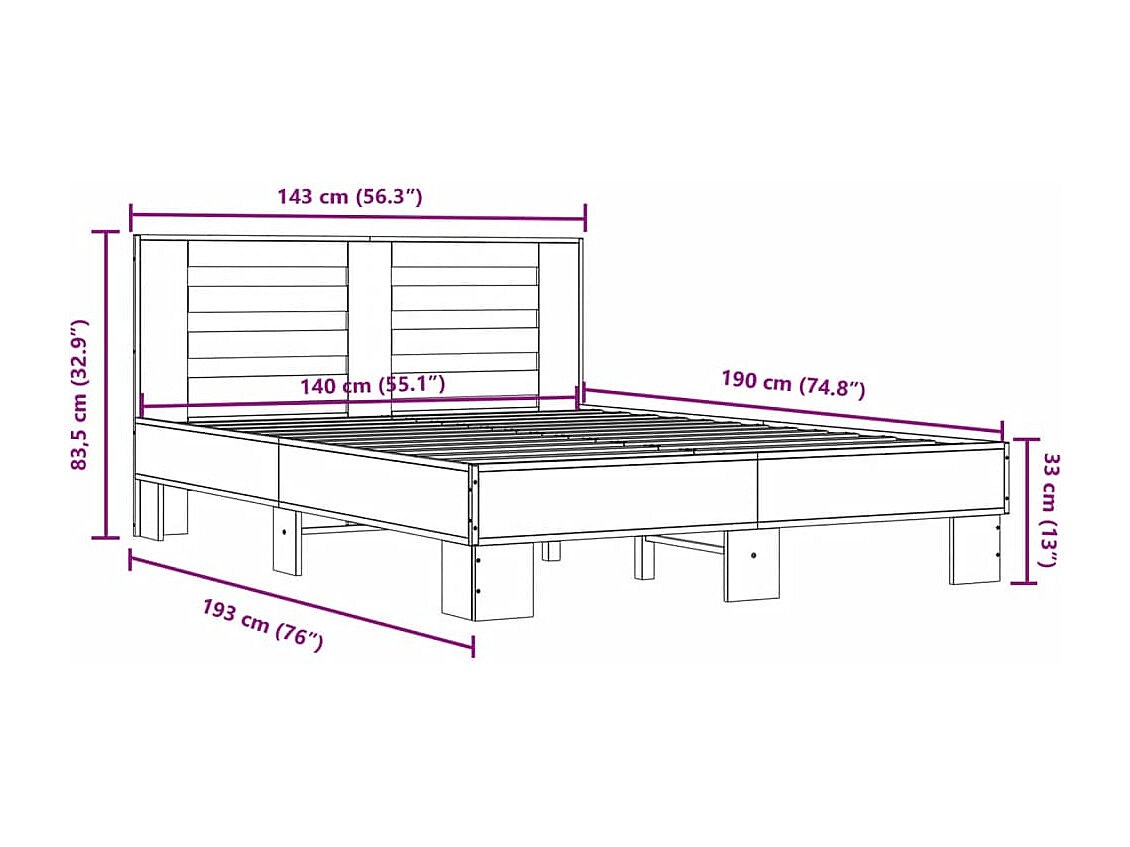 Lit double | Lit adulte | Cadre de lit noir 140x190 cm