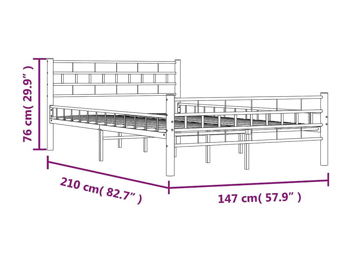 Lit double | Lit adulte | Cadre de lit noir acier 140x200 cm