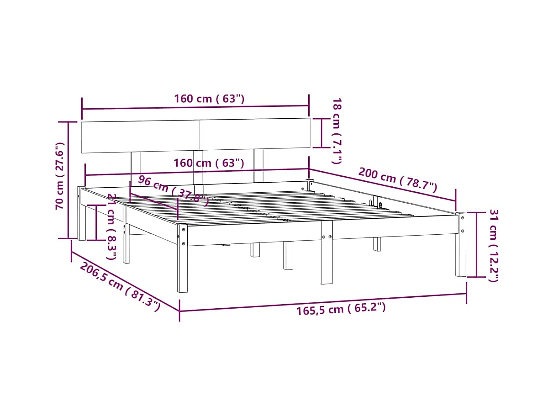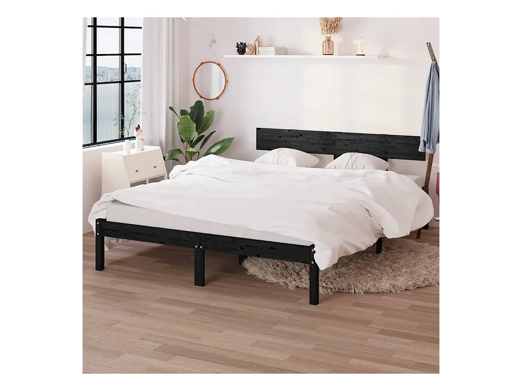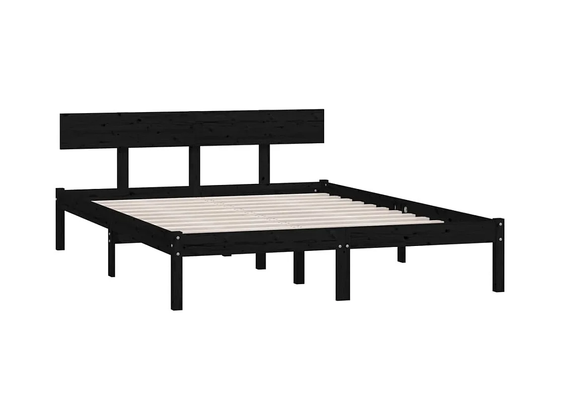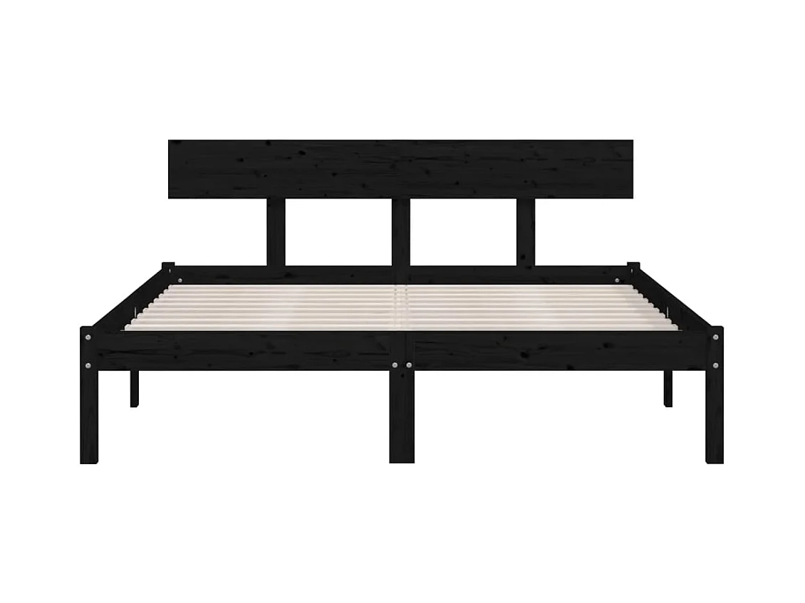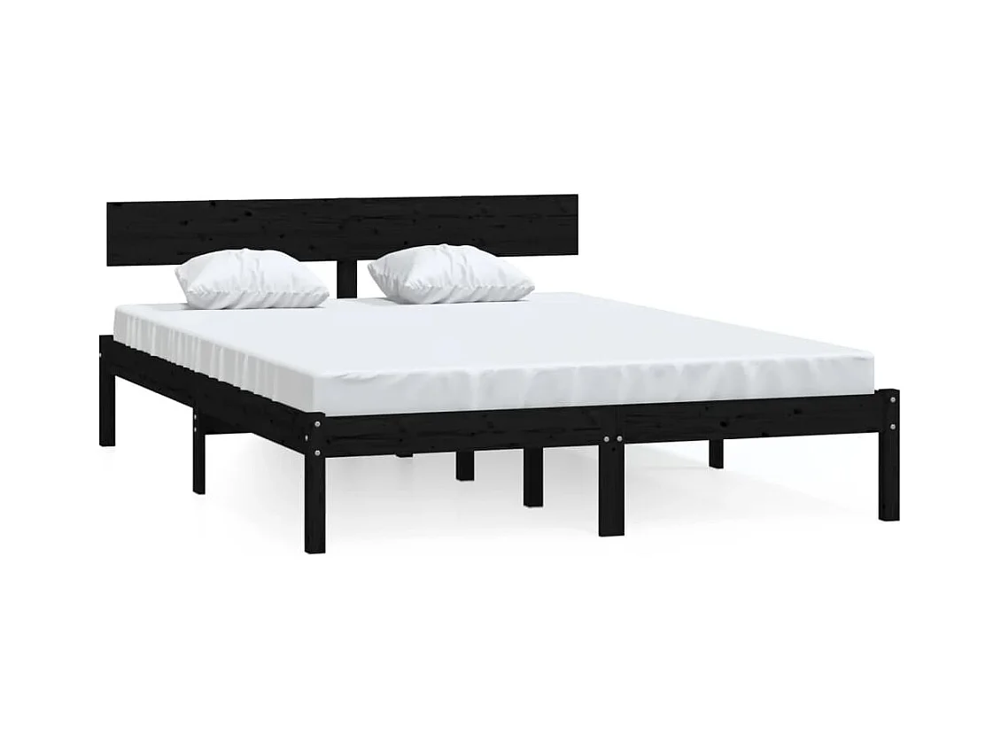 Lit double | Lit adulte | Cadre de lit noir bois massif 160x200 cm