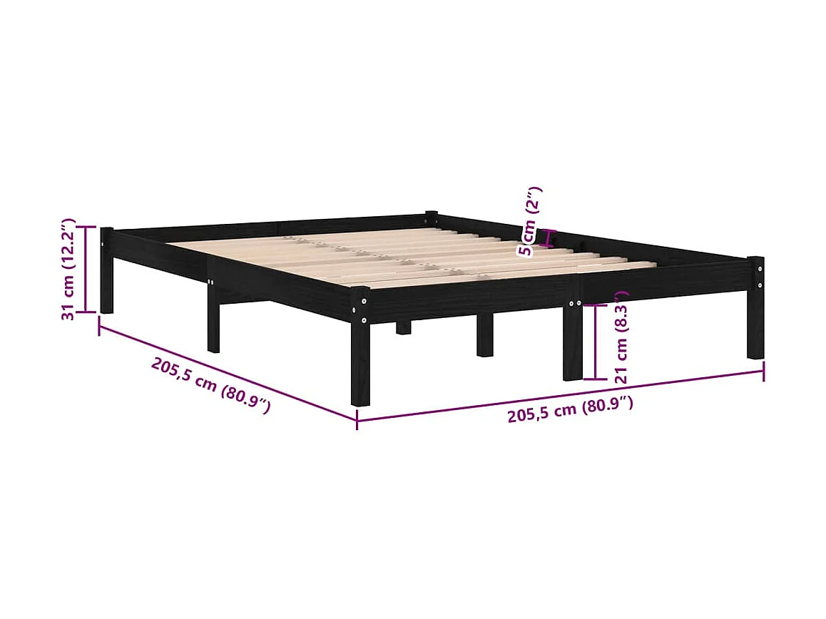 Cadre de lit sans matelas noir 200x200 cm bois massif de pin