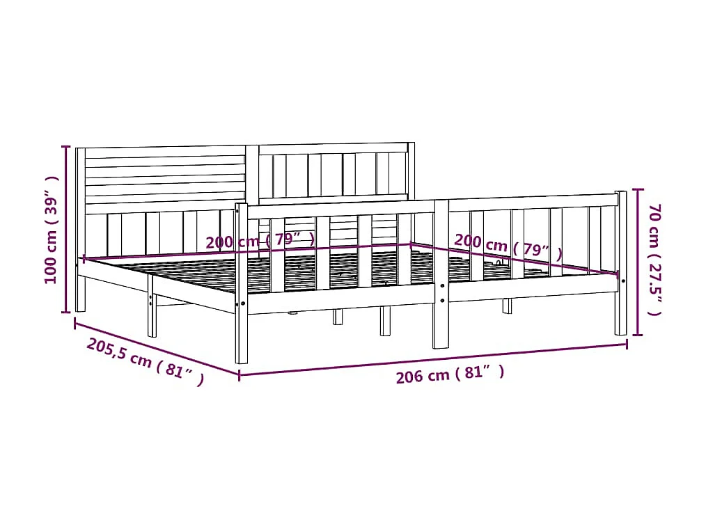 Lit double | Lit adulte | Cadre de lit noir bois massif 200x200 cm