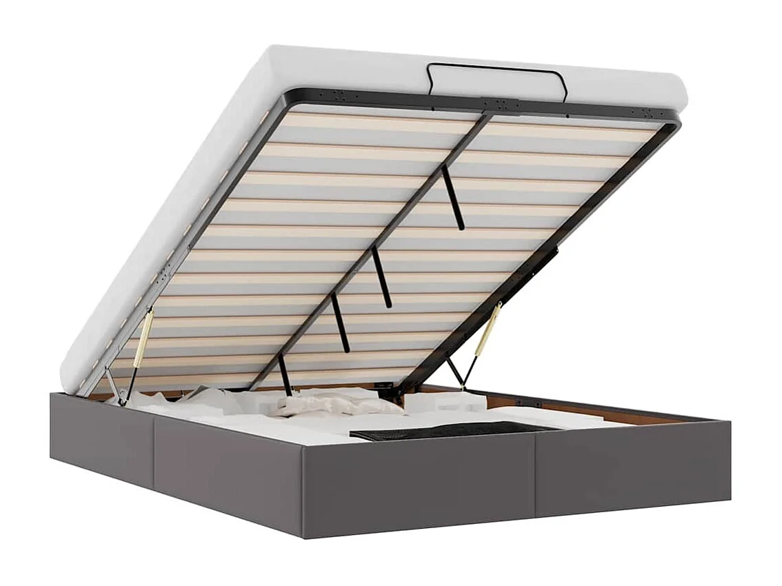 Lit double | Lit adulte | Cadre de lit ottoman gris 140x200 cm similicuir