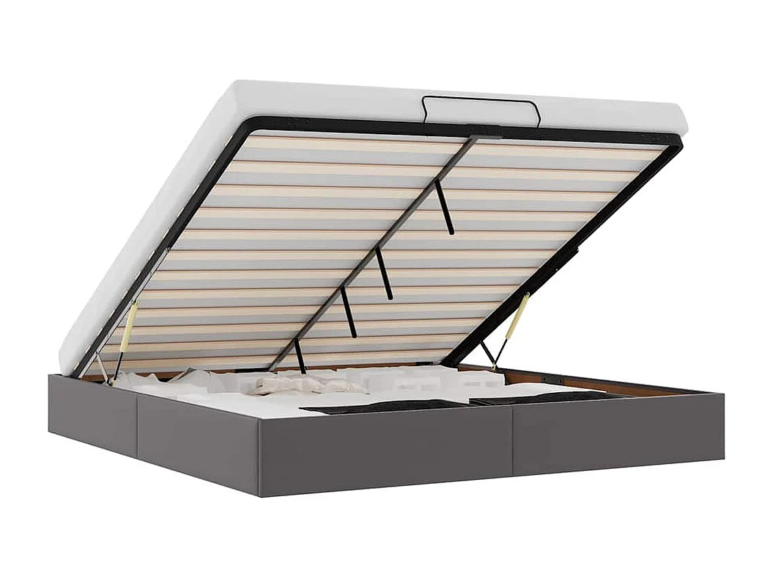Lit double | Lit adulte | Cadre de lit ottoman gris 160x200 cm similicuir