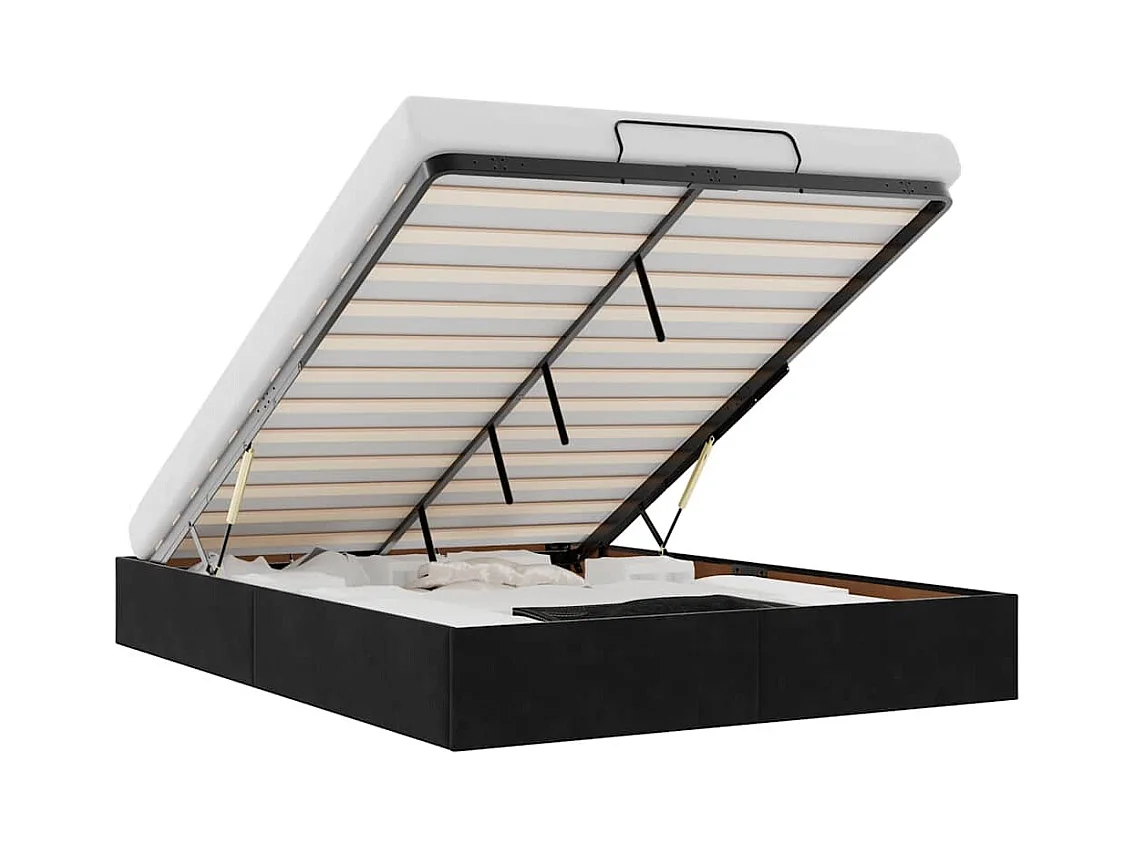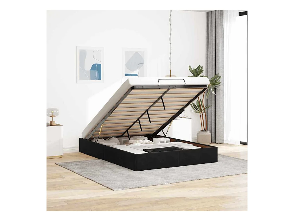 Lit double | Lit adulte | Cadre de lit ottoman noir 140x190 cm velours