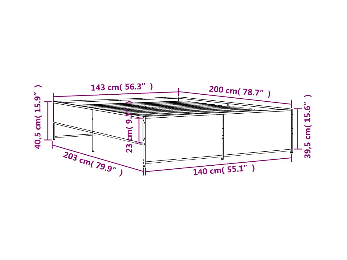 Lit double | Lit adulte | Cadre de lit sonoma gris 140x200 cm