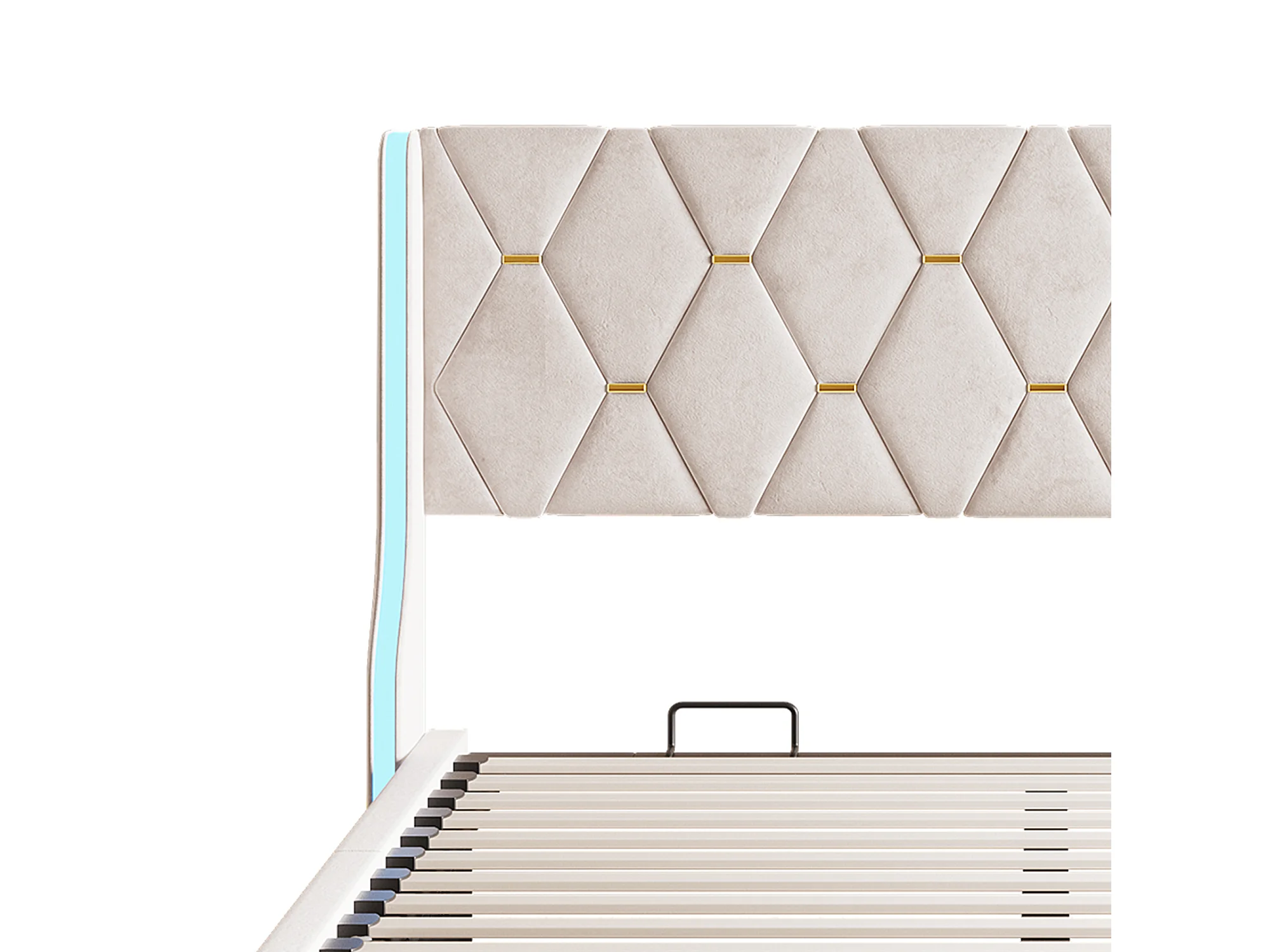 Lit Double - Lit Coffre avec Plateforme à Lattes - Tête de Lit LED RGB - Velours Beige - 140 x 200 cm