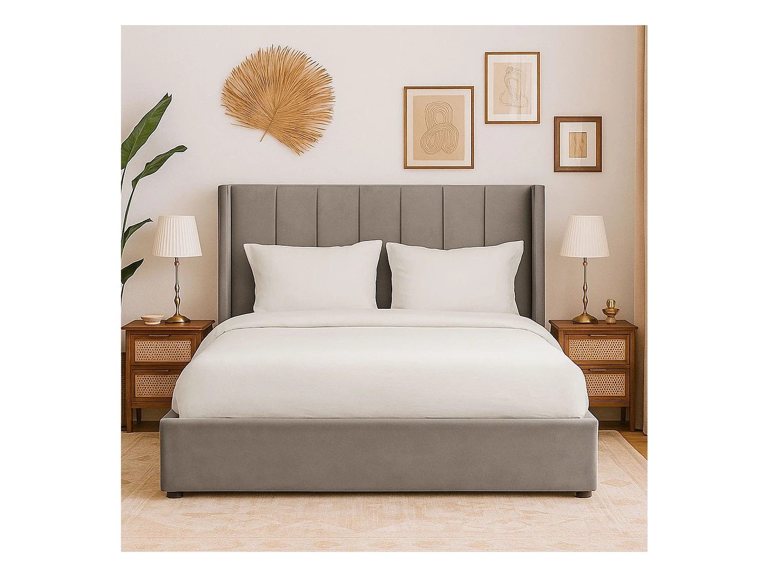 Lit Adulte Sommier Relevable "Fady" 180x200cm Taupe