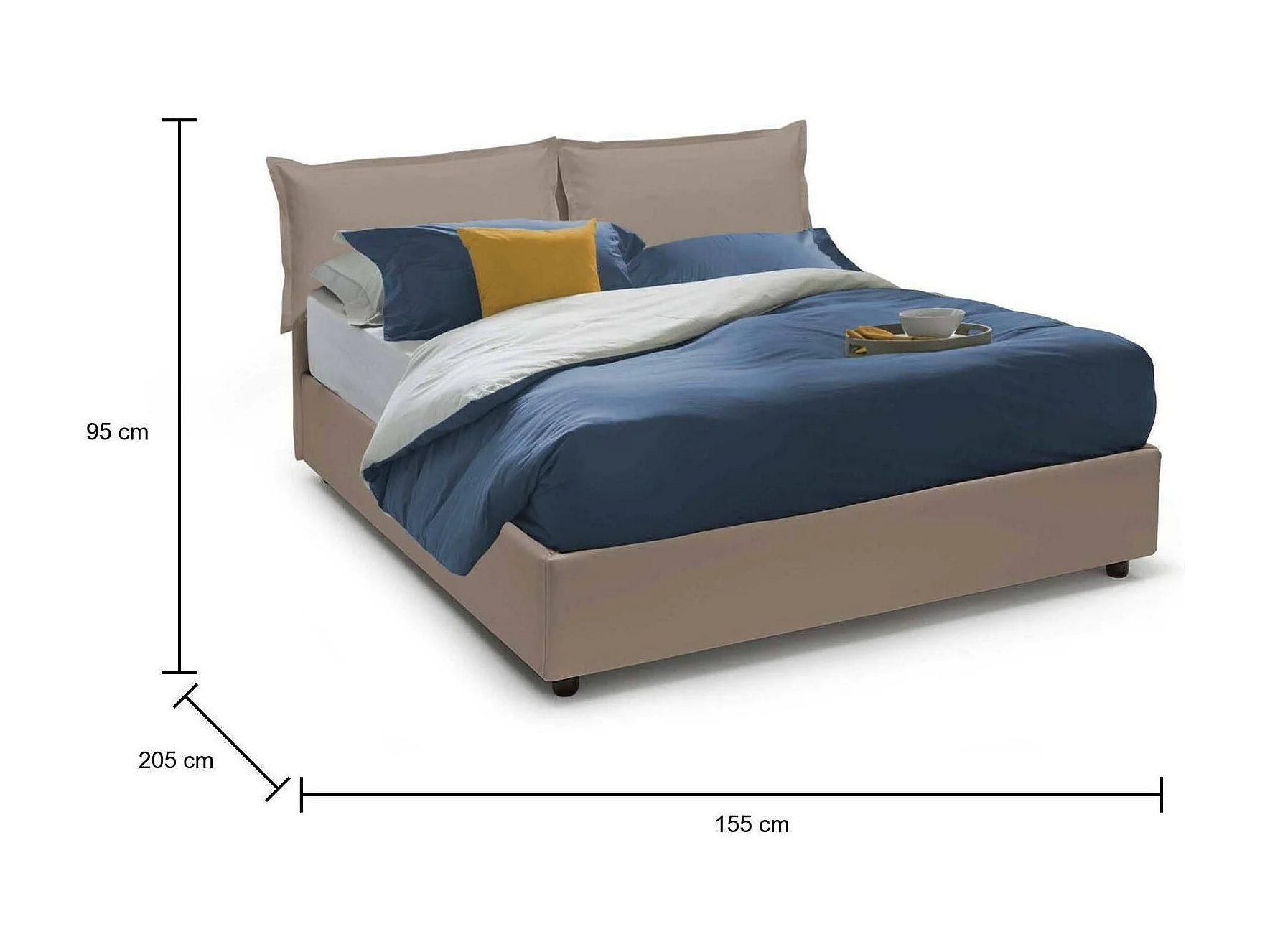 Lit double Maya, Lit coffre avec revêtement en éco-cuir, 100% Made in Italy, Ouverture frontale, adapté pour matelas 140x190 cm, gris tourterelle
