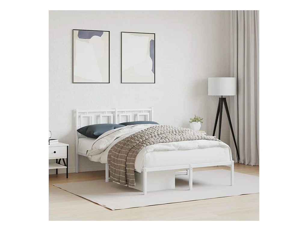 Lit double métal + tête de lit blanc 120x200 cm FR83423