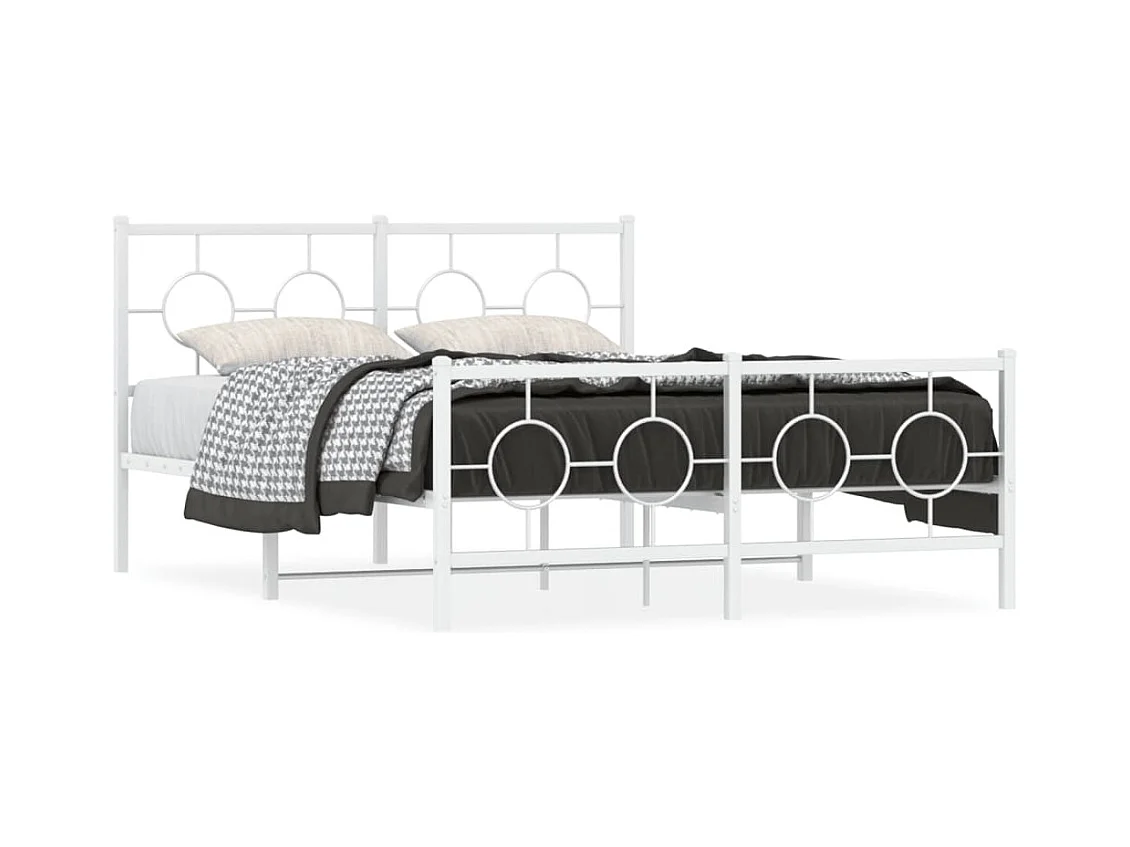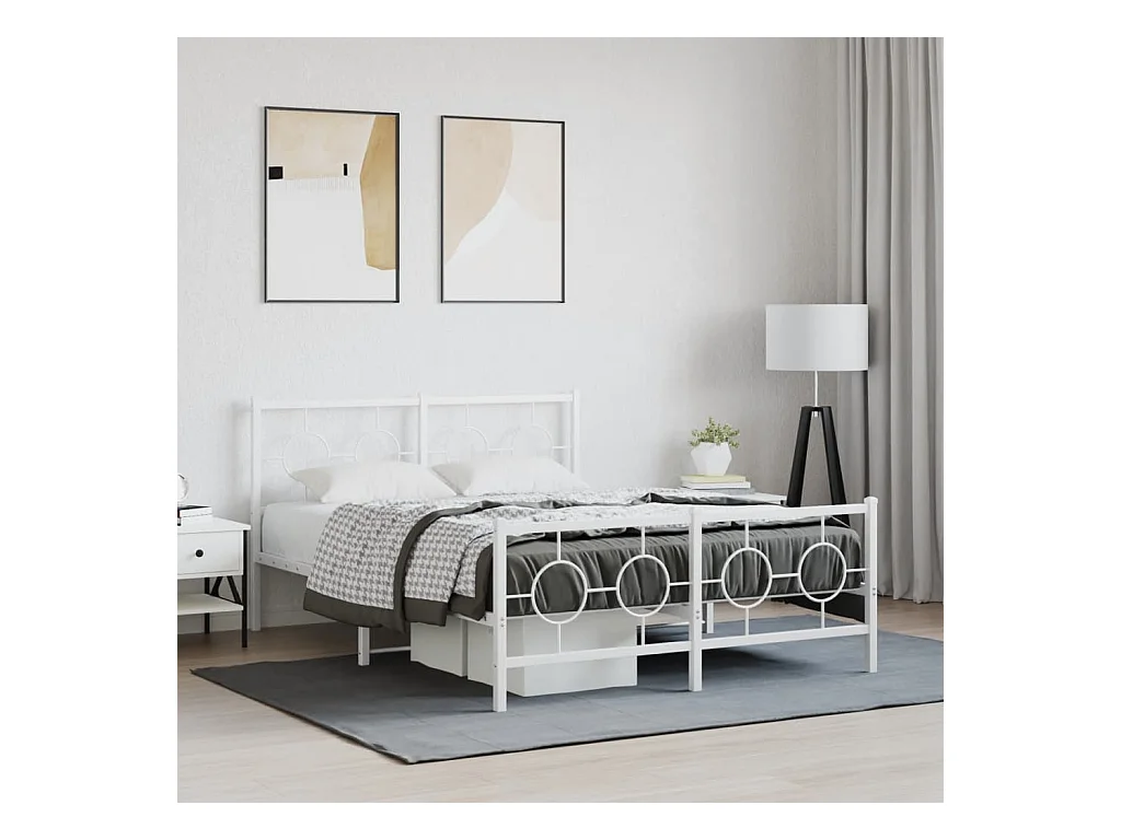 Lit double métal + tête de lit/pied de lit blanc 135x190cm FR23485