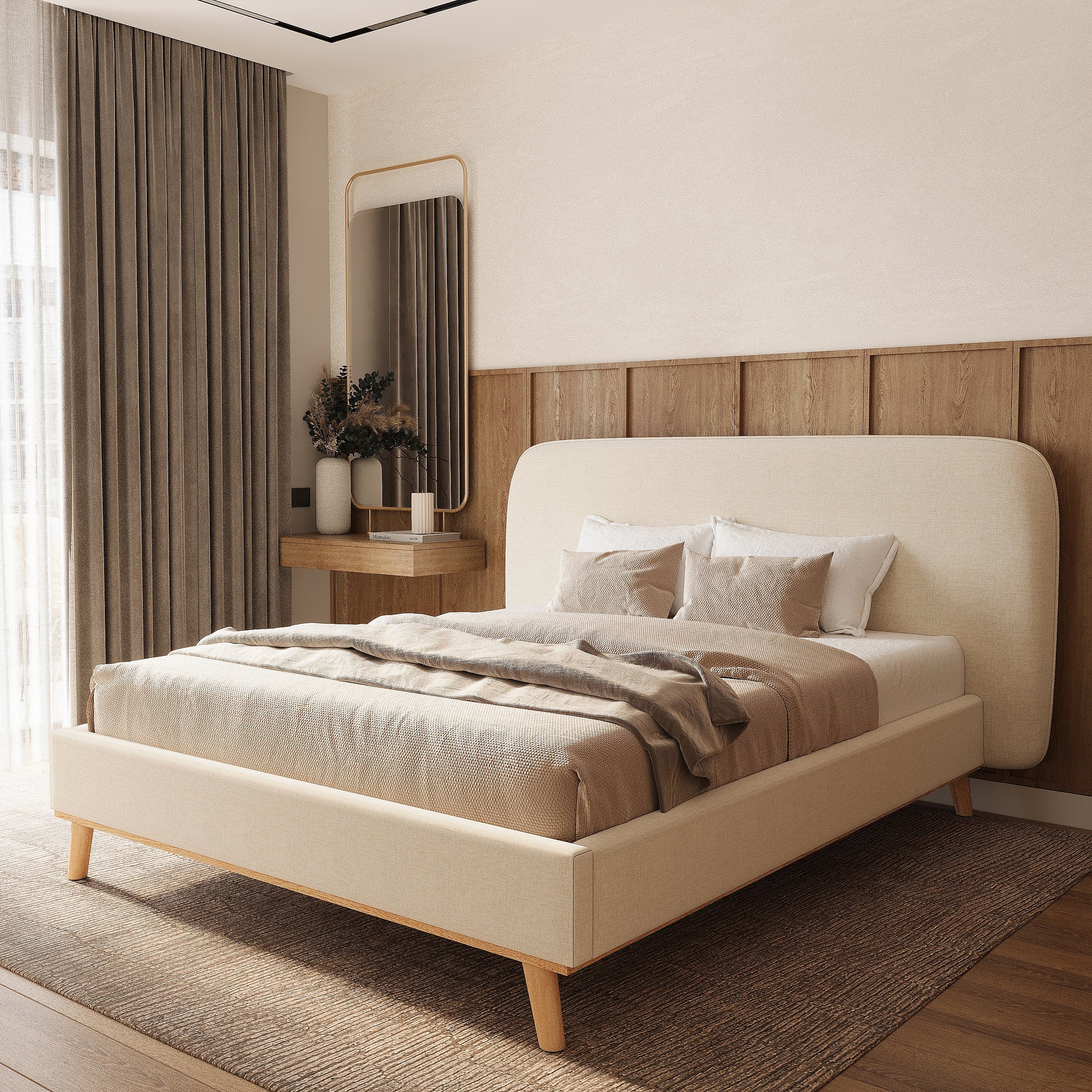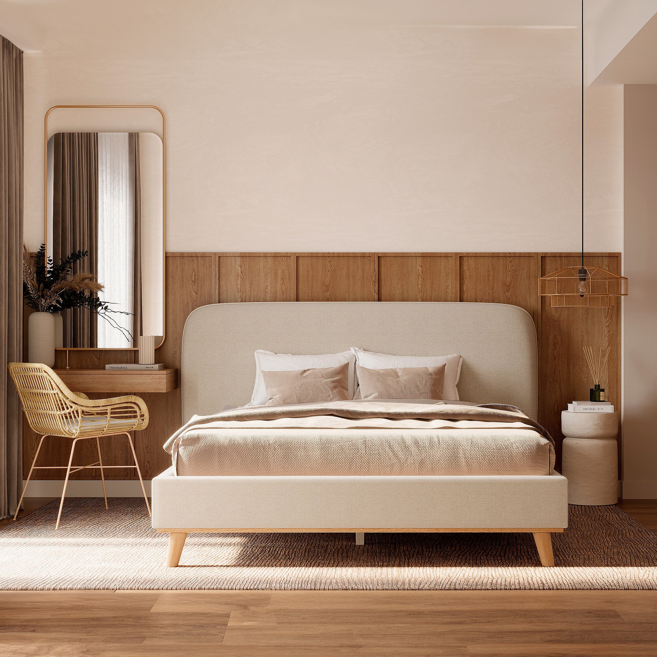 Lit double 160x200 cm en tissu gris/beige - Modjo