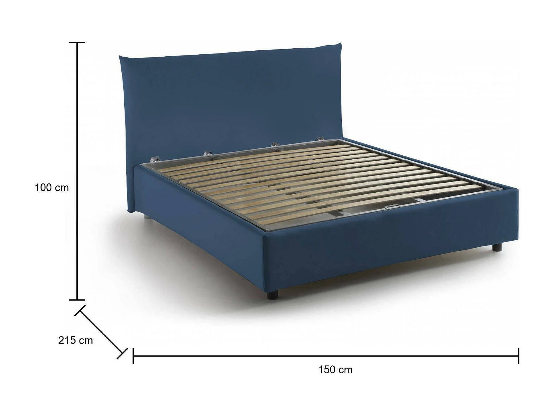 Lit double Ornella, Lit coffre avec revêtement en tissu, 100% Made in Italy, Ouverture frontale, adapté pour matelas 120x190 cm, Bleu