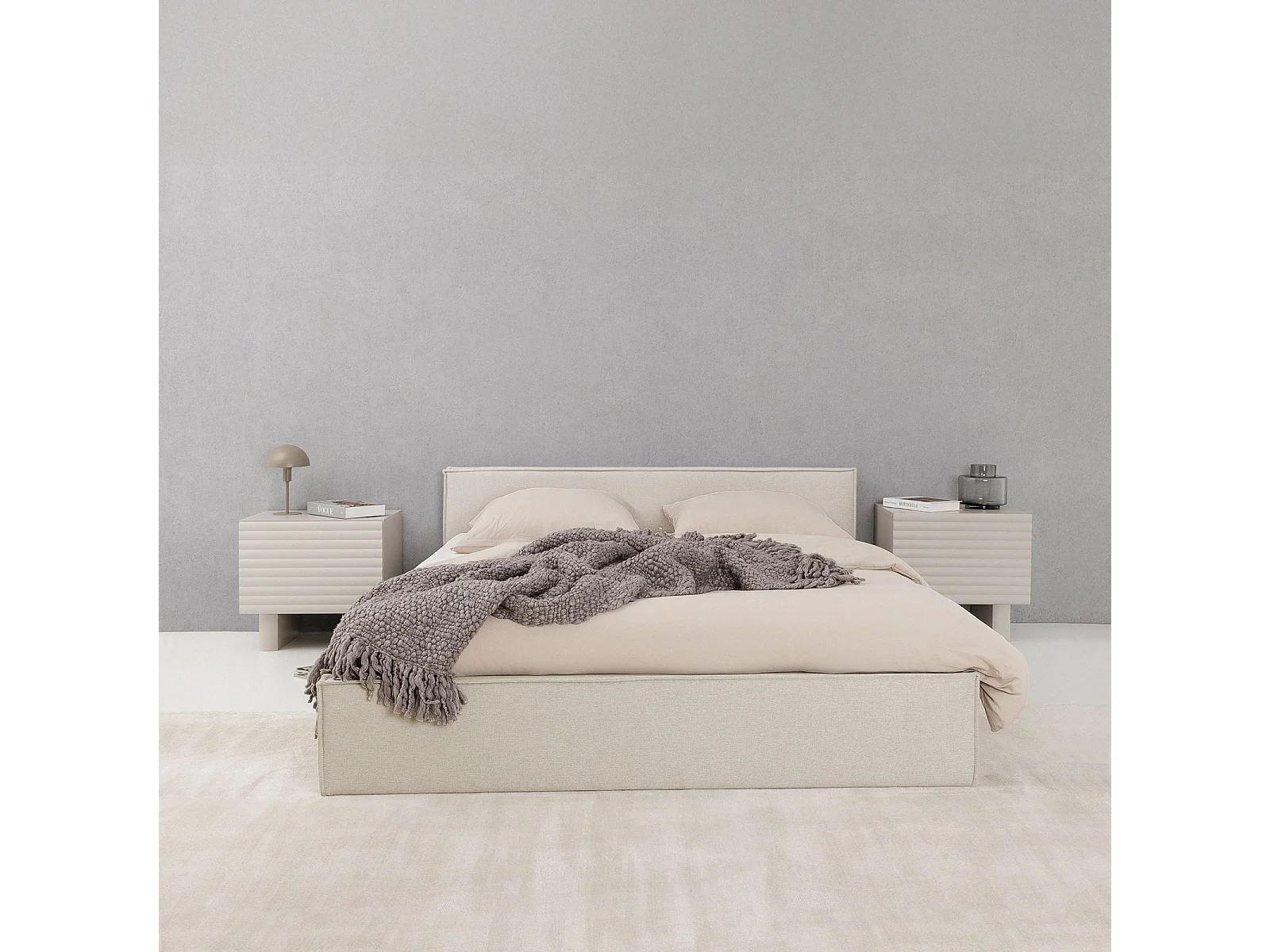 Lit Double PESARO rembourré 160x200 cm, Tête de lit en Tissu, Blanc Crème, avec Sommier, Lit Queen Size pour Adulte, Lit 2 Places