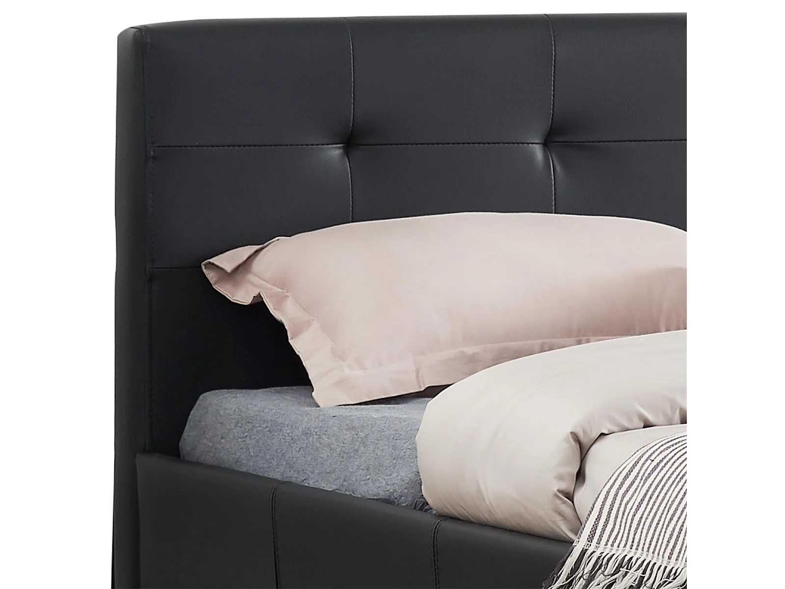 Lit double pour adulte MATHIEU avec sommier 140x190 cm 2 places / 2 personnes, tête et pied de lit capitonnés en synthétique noir