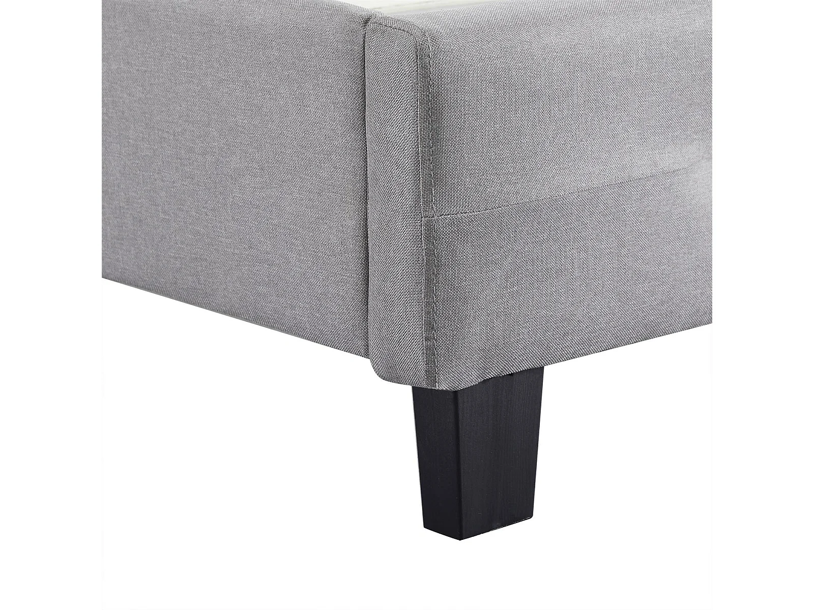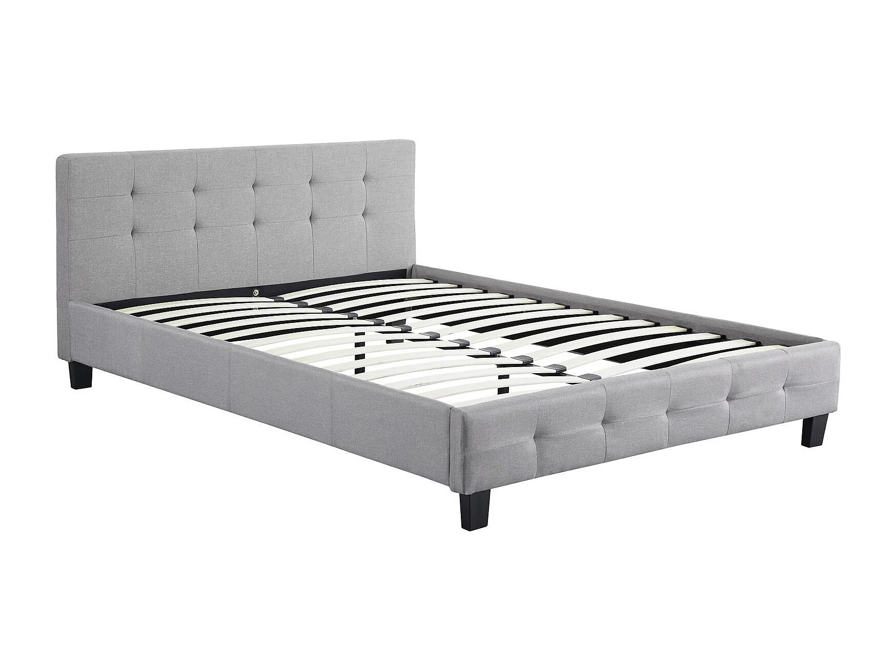 Lit double pour adulte MATHIEU avec sommier 140x190 cm 2 places / 2 personnes, tête et pied de lit capitonnés, en tissu gris