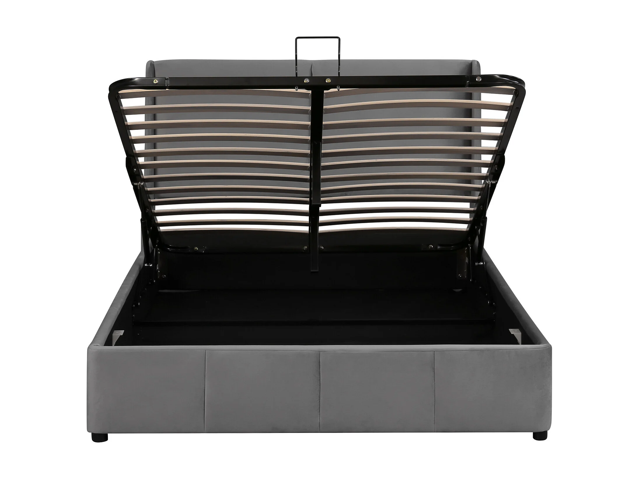 Lit double rembourré, 140 x 200 cm, avec espace de rangement sous le lit, sommier à lattes, gris