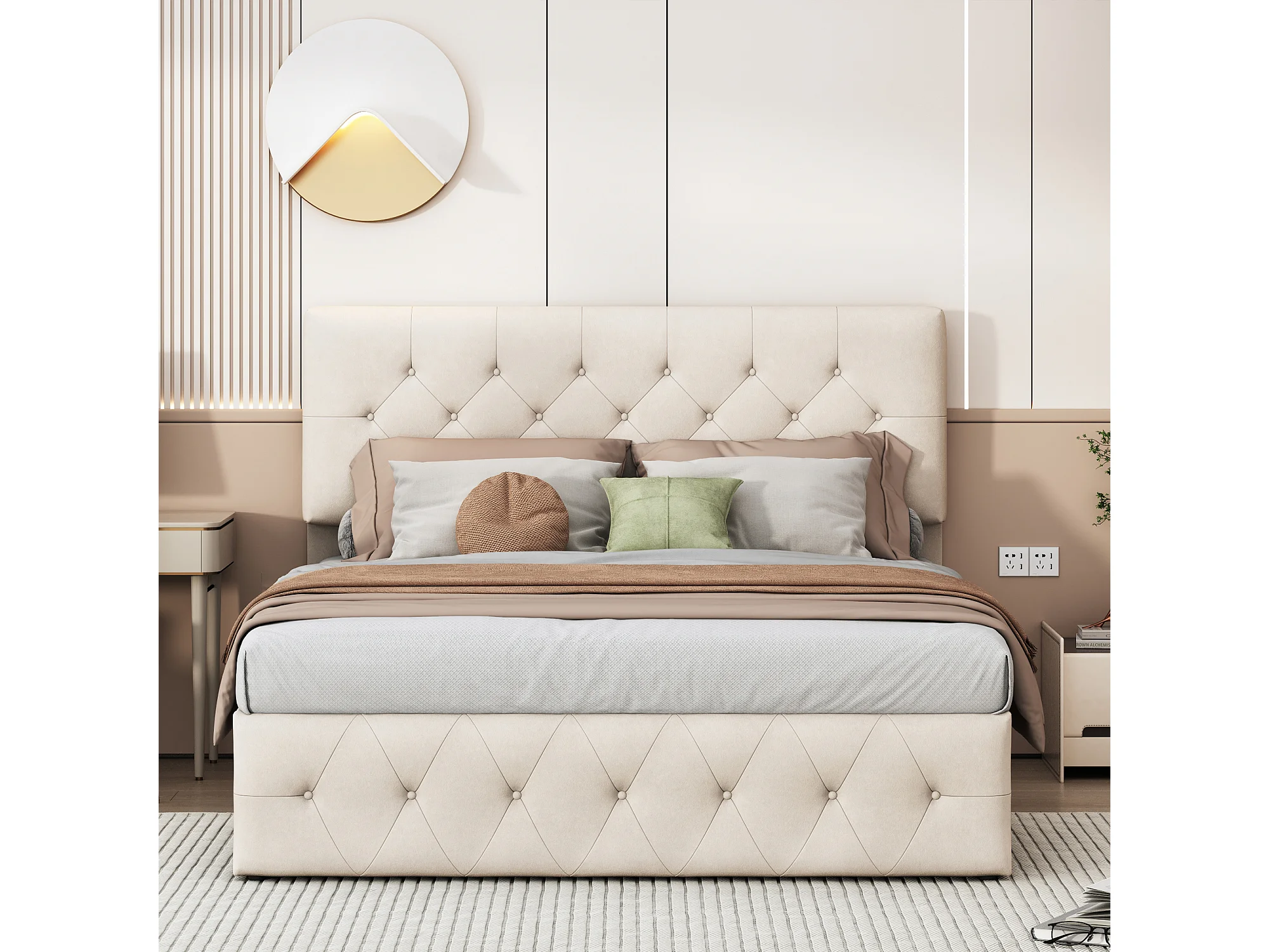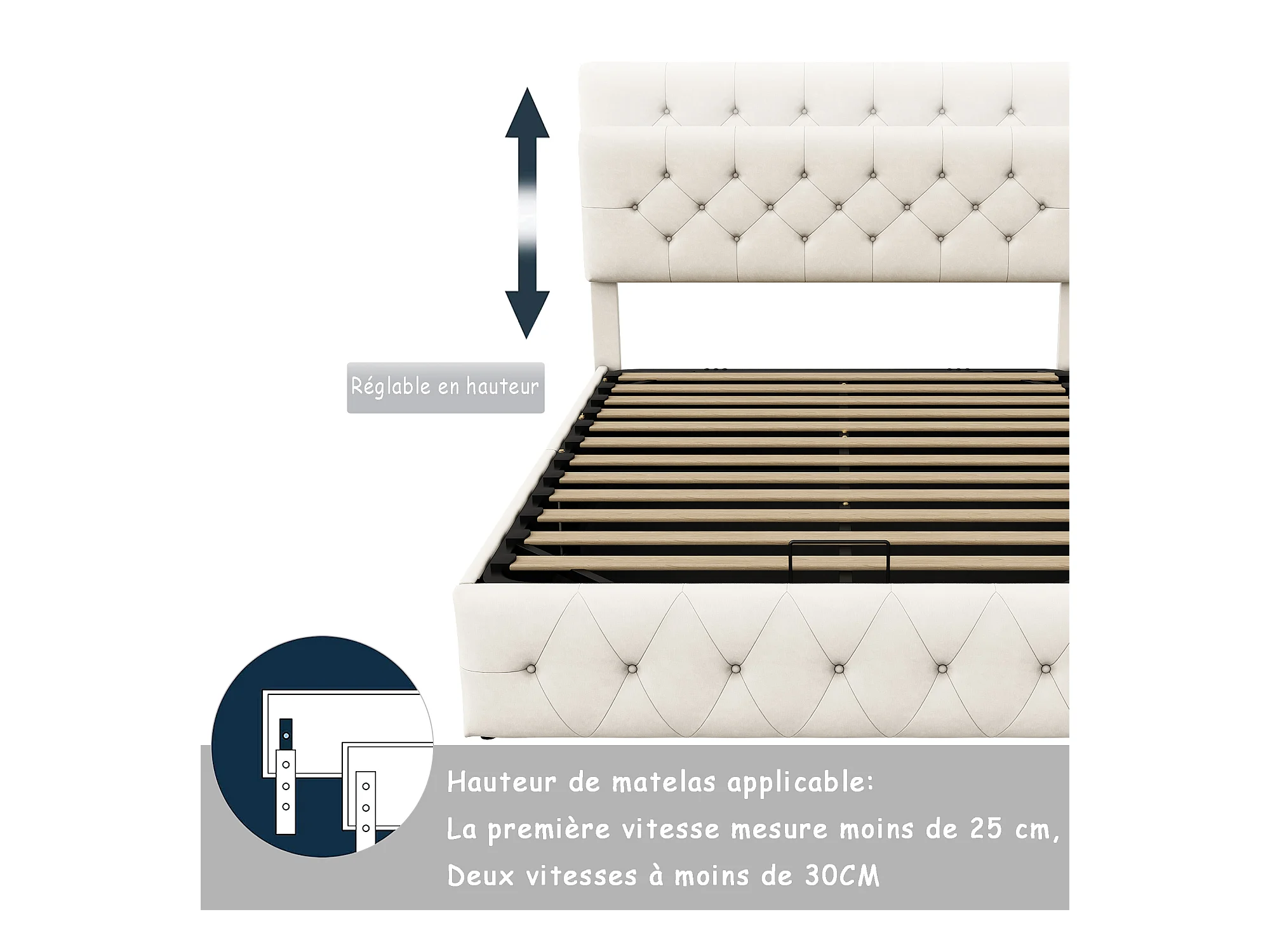 Lit double rembourré, 140 x 200 cm, avec tête de lit douce, espace de rangement, pour adolescent, sommier à lattes, sans matelas, en velours