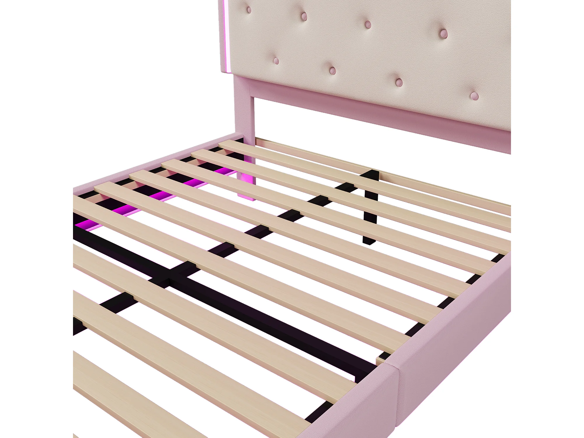 Lit double 140x200 cm - PU rose - Lit adulte avec éclairage LED - sans matelas