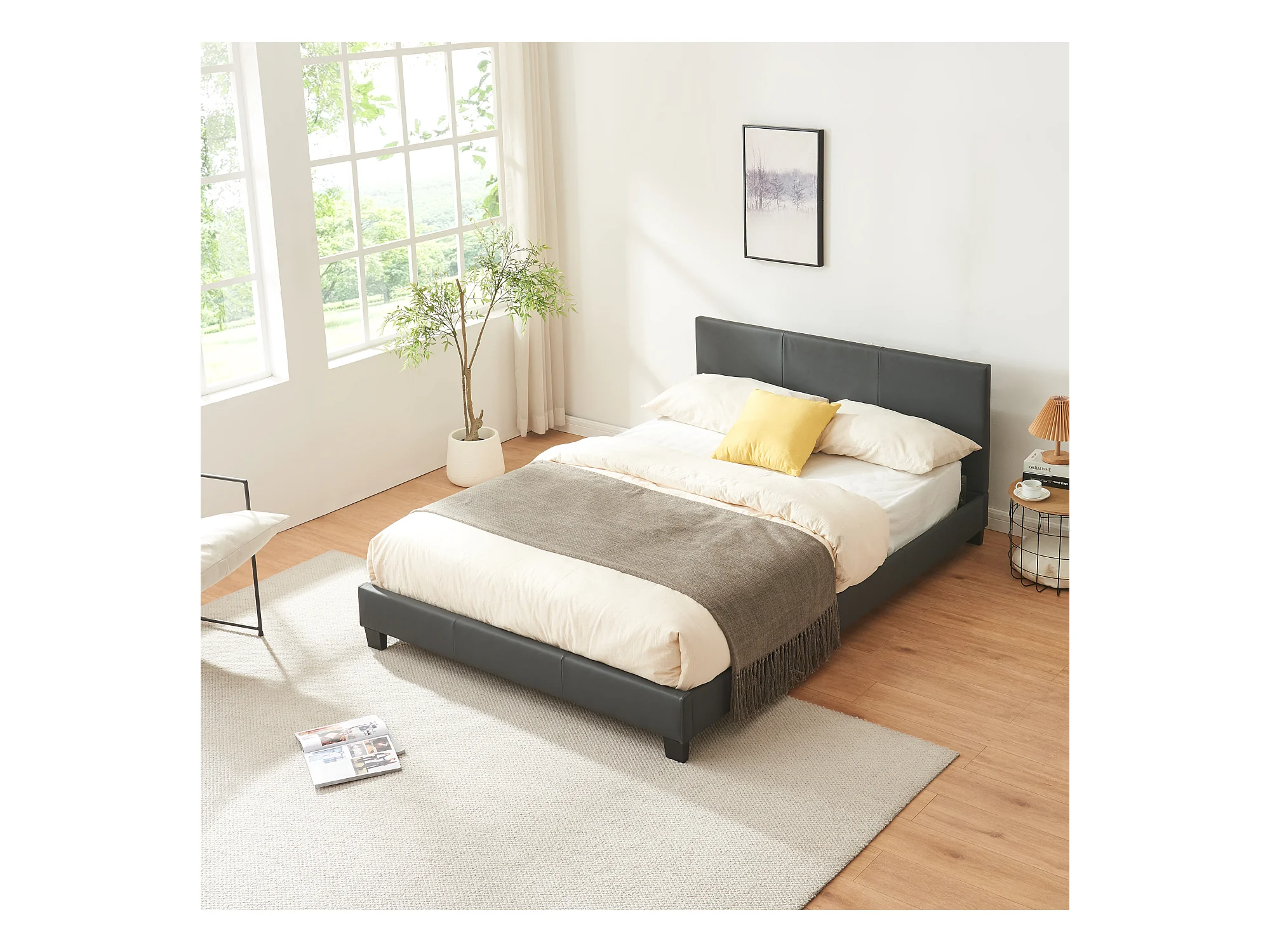 Lit Double Rembourré Albacete Sommier à Lattes Simili 140 x 200 cm Gris Foncé Corium