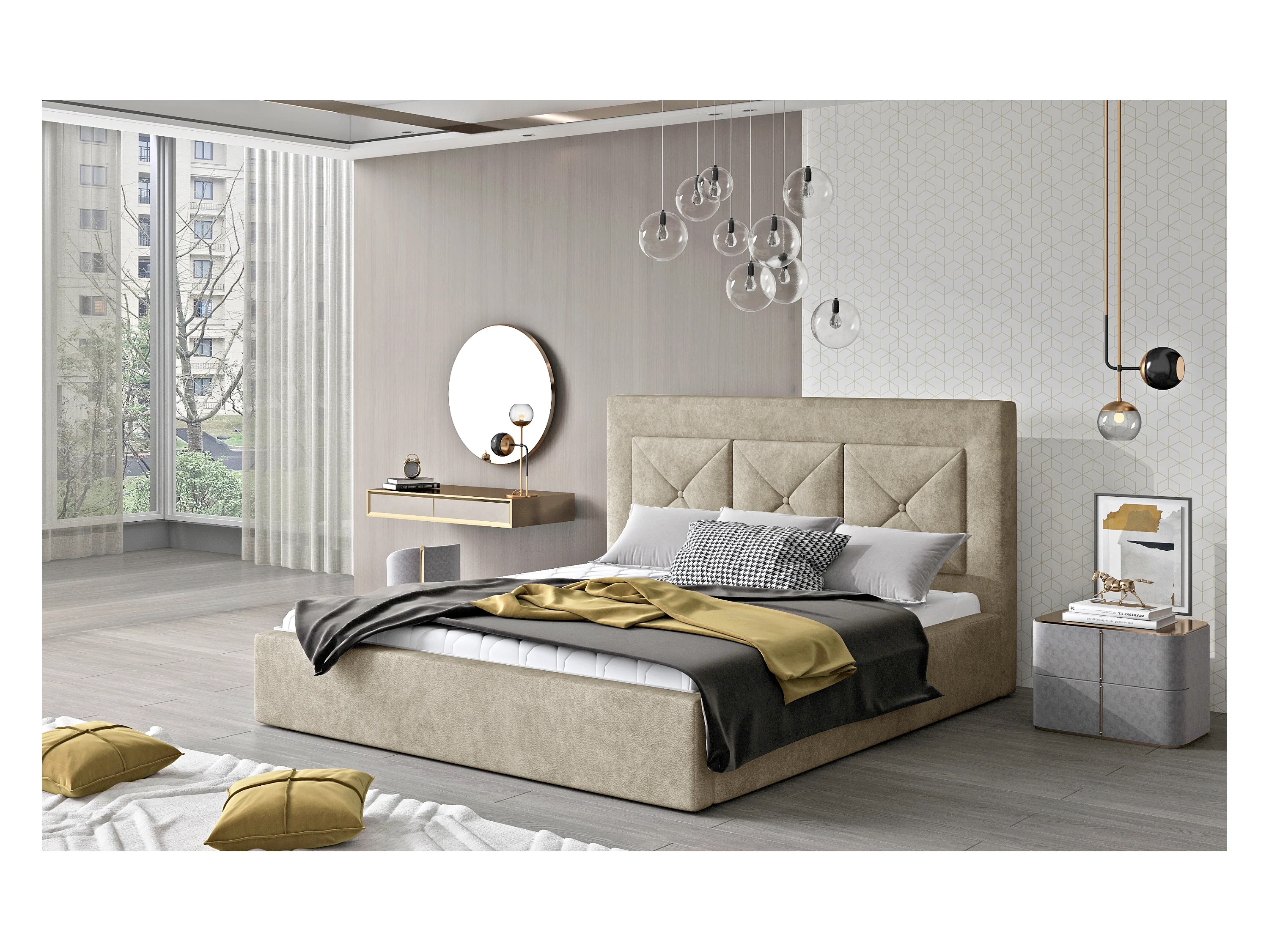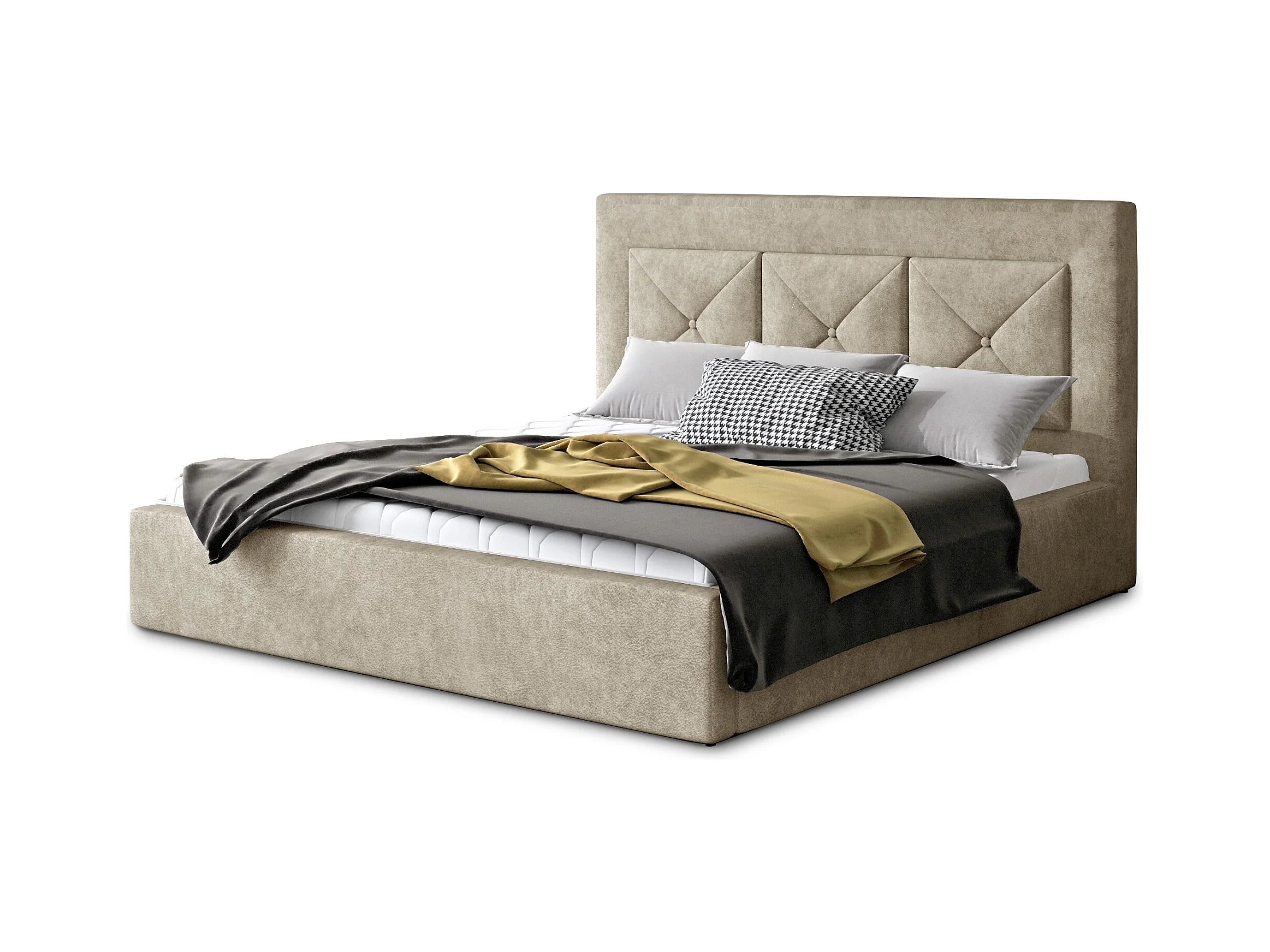 Lit double rembourré en tissu Clarin-Couleur Beige-140x200-Version avec sommier