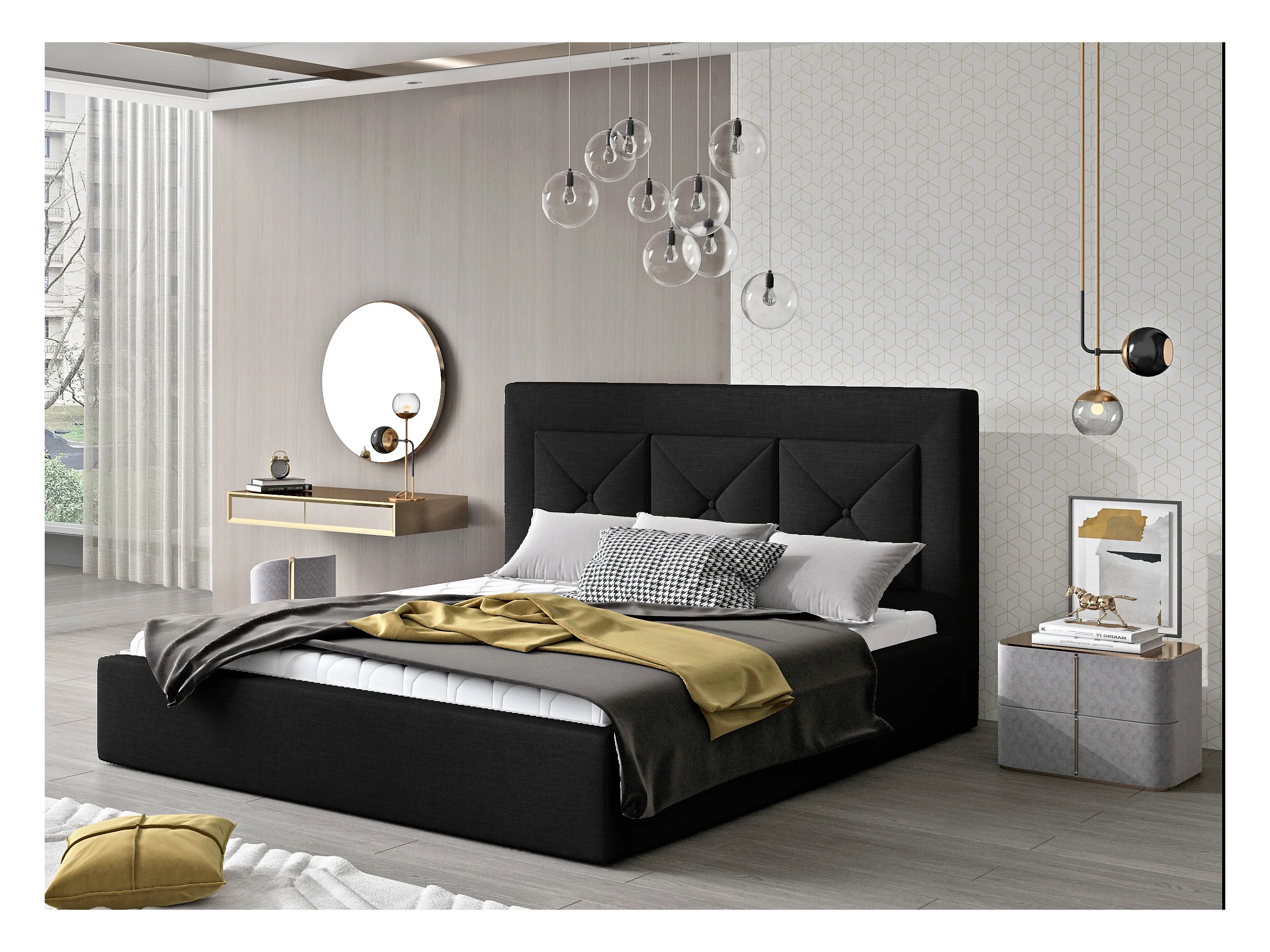 Lit double rembourré en tissu Clarin-Couleur Noir-140x200-Version avec sommier