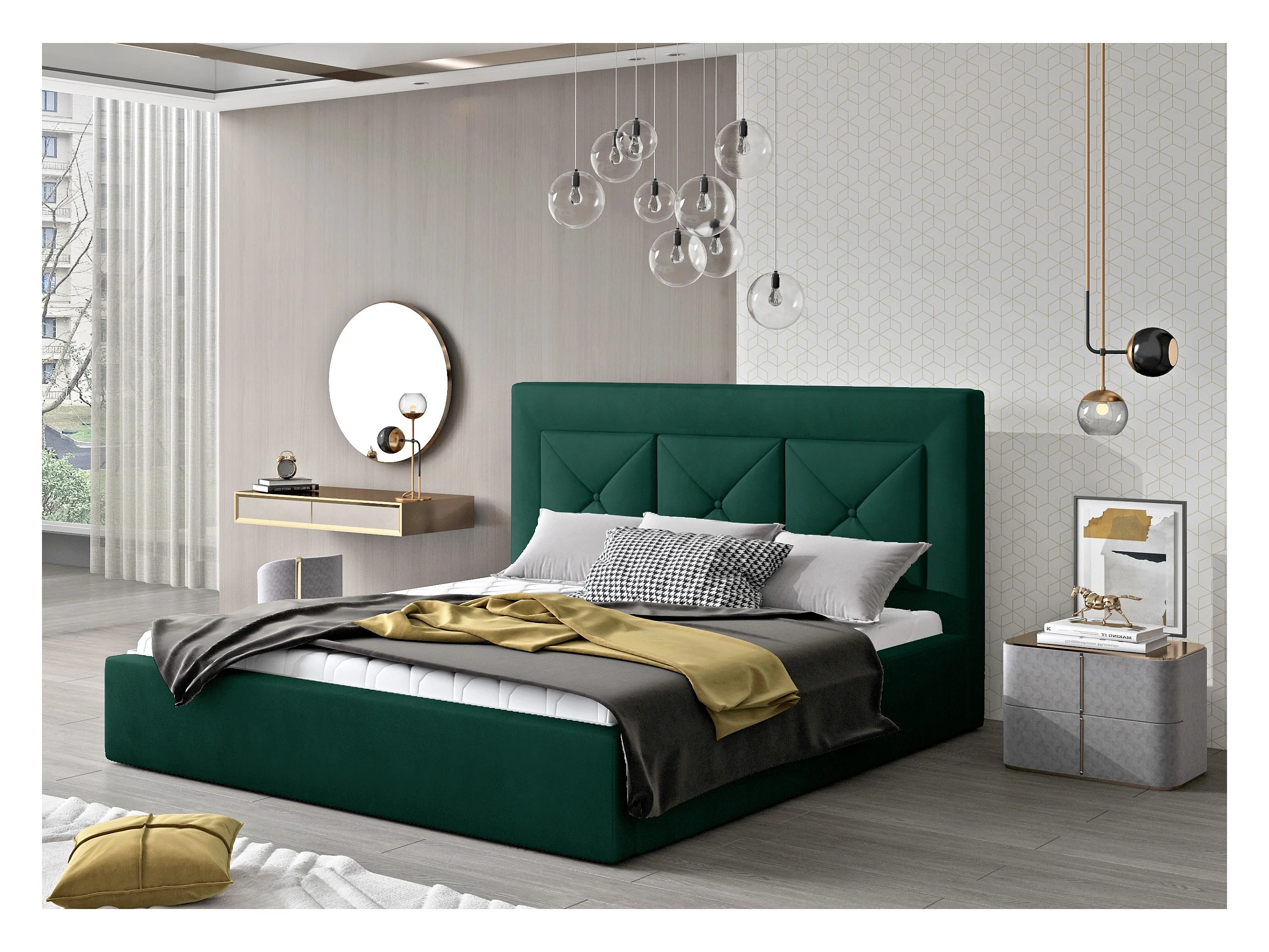 Lit double rembourré en velours Clarin-Couleur Vert épinard-160x200-Version coffre de rangement
