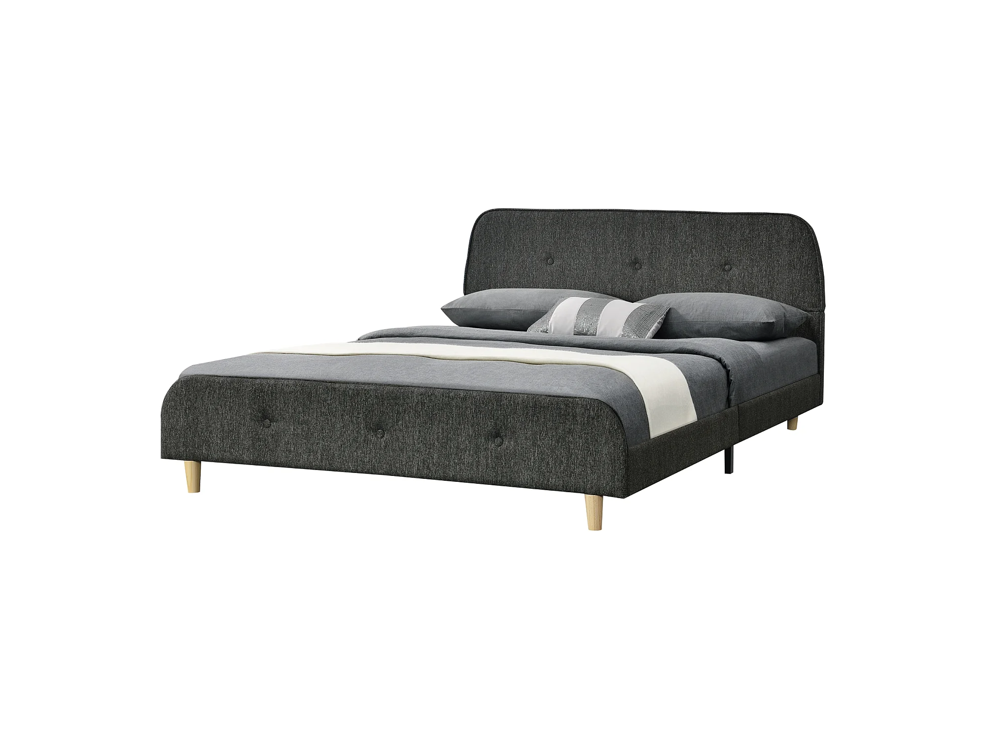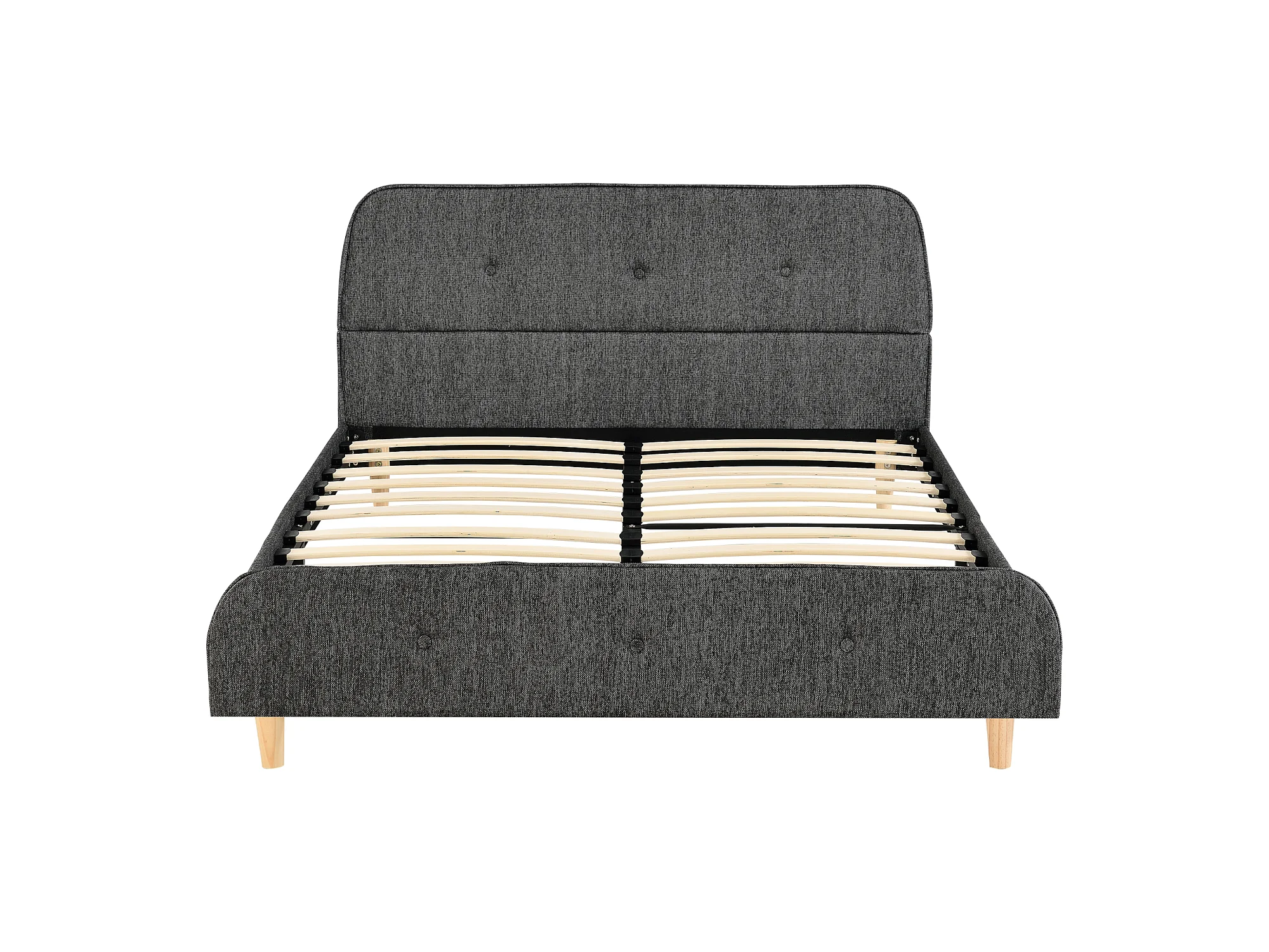 Lit Double Rembourré Silkeborg Housse en Lin 140 x 200 cm Gris Foncé [en.casa]