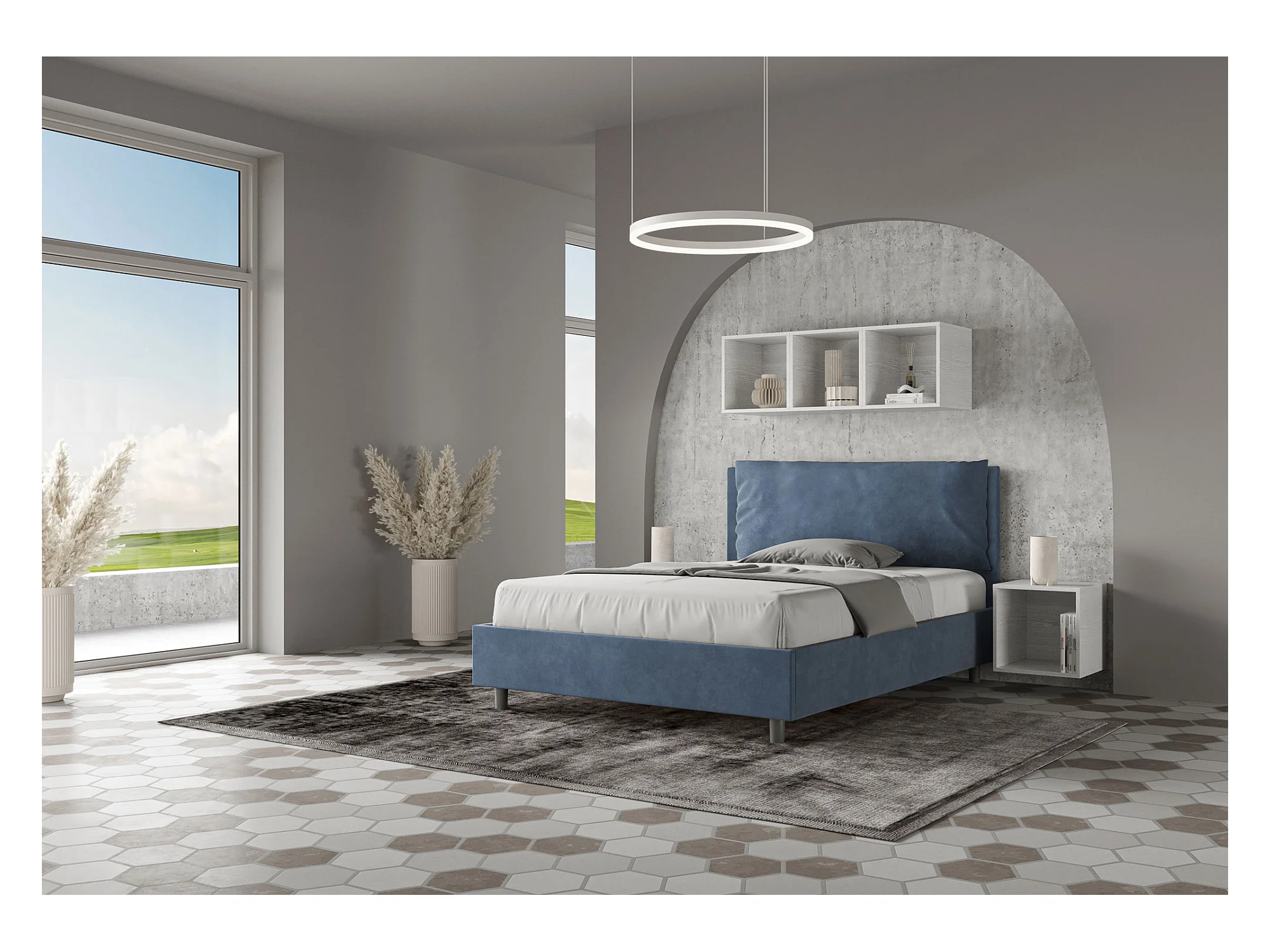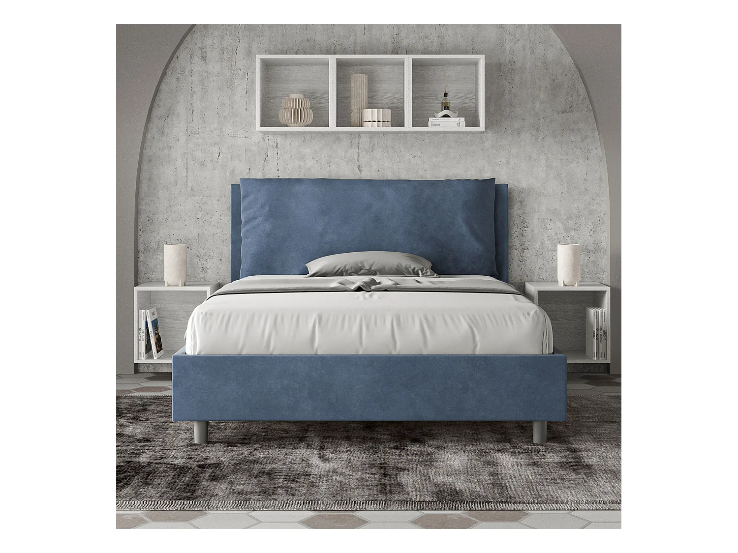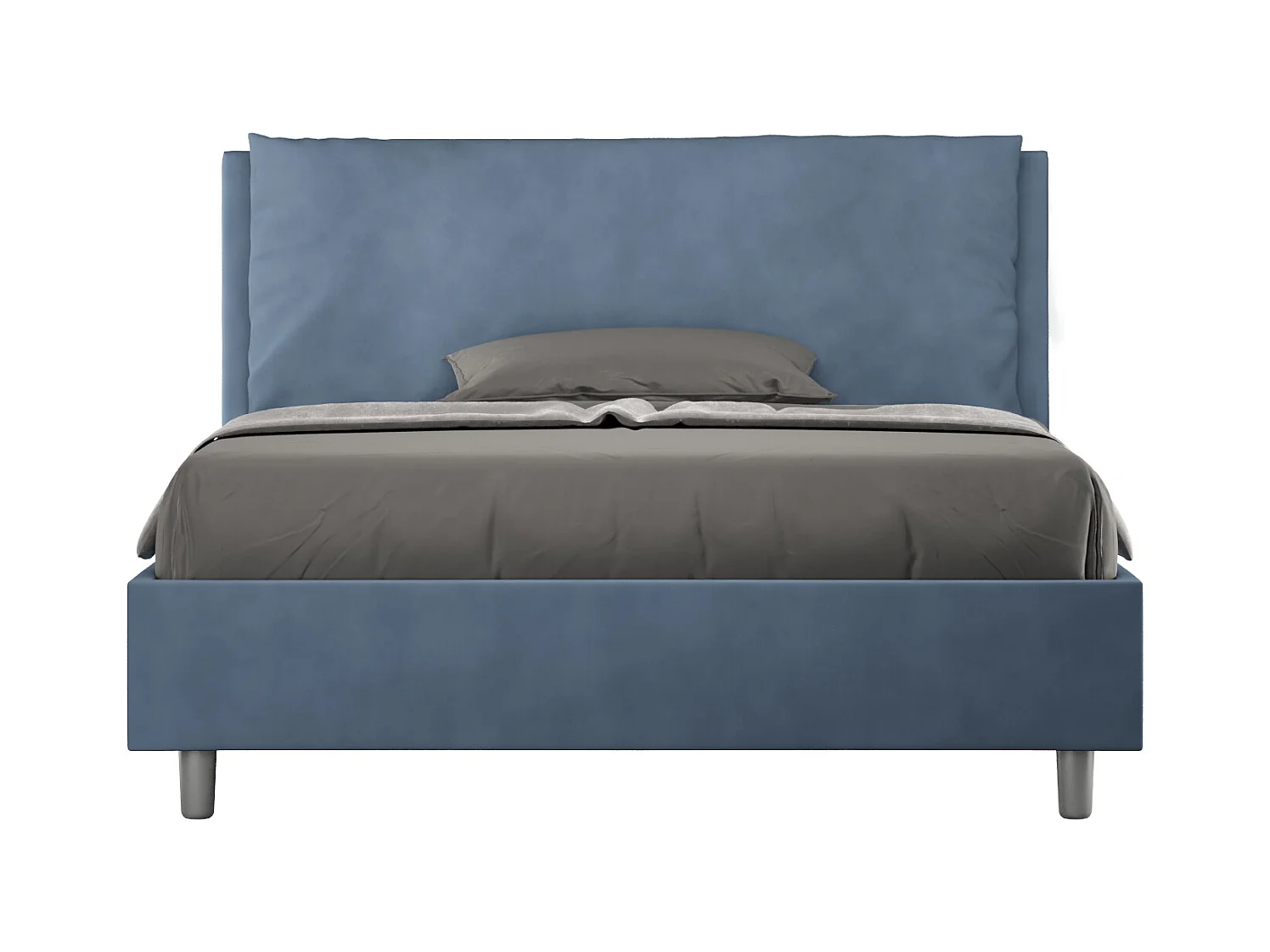 Lit double sans sommier rembourré 140x200 microfibre bleu Antea Large