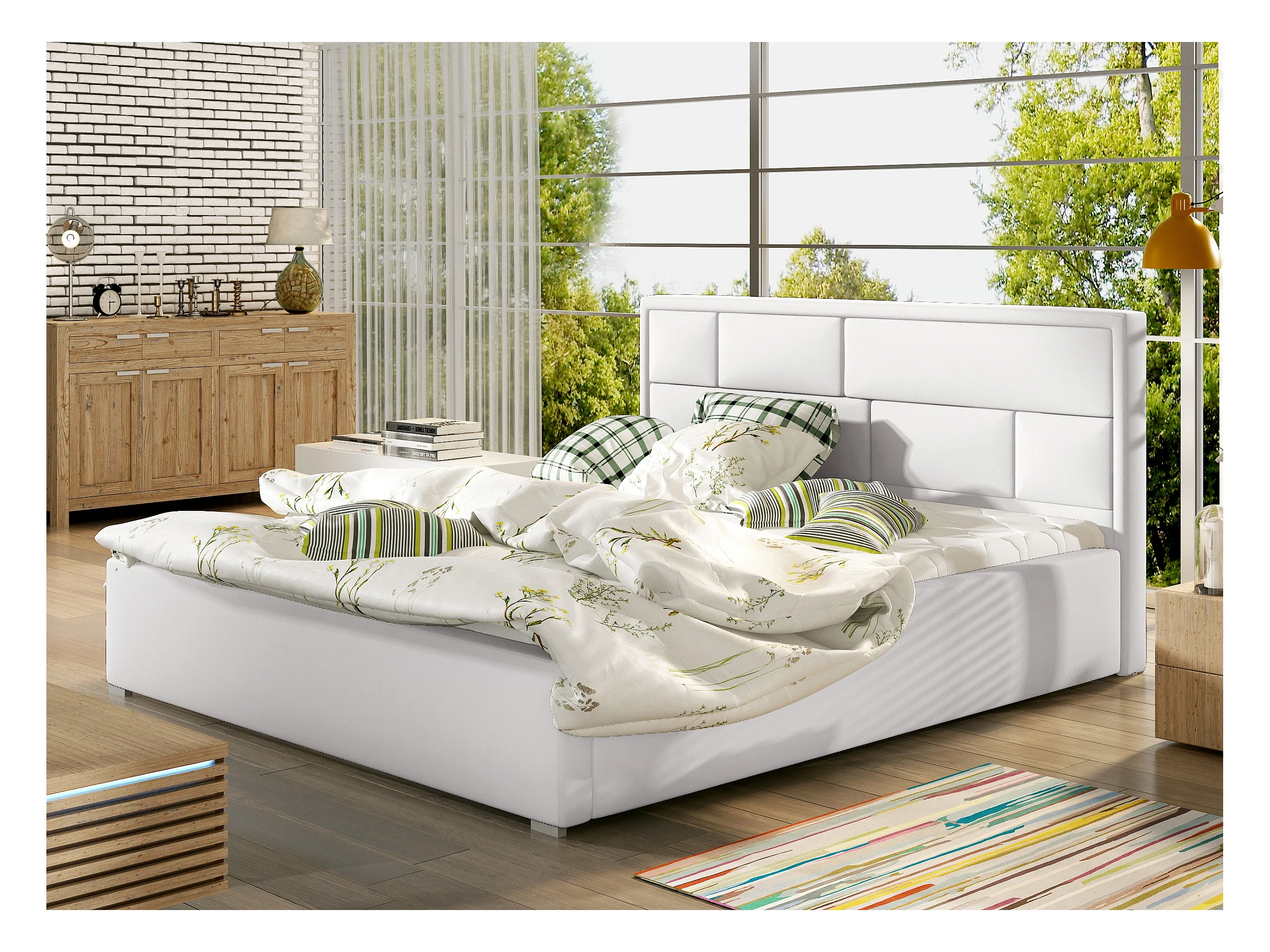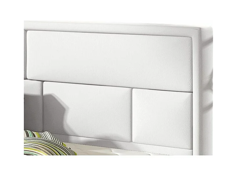 Lit double simili cuir blanc tête de lit capitonnée Lenzo - 4 tailles-140x200