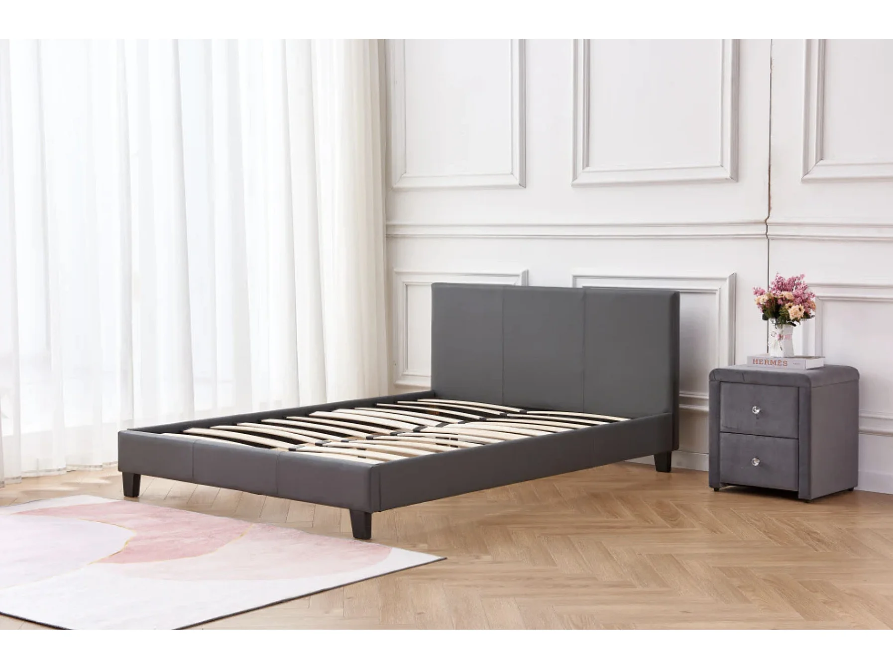Lit double simili cuir Diag-Couleur Gris-160x200