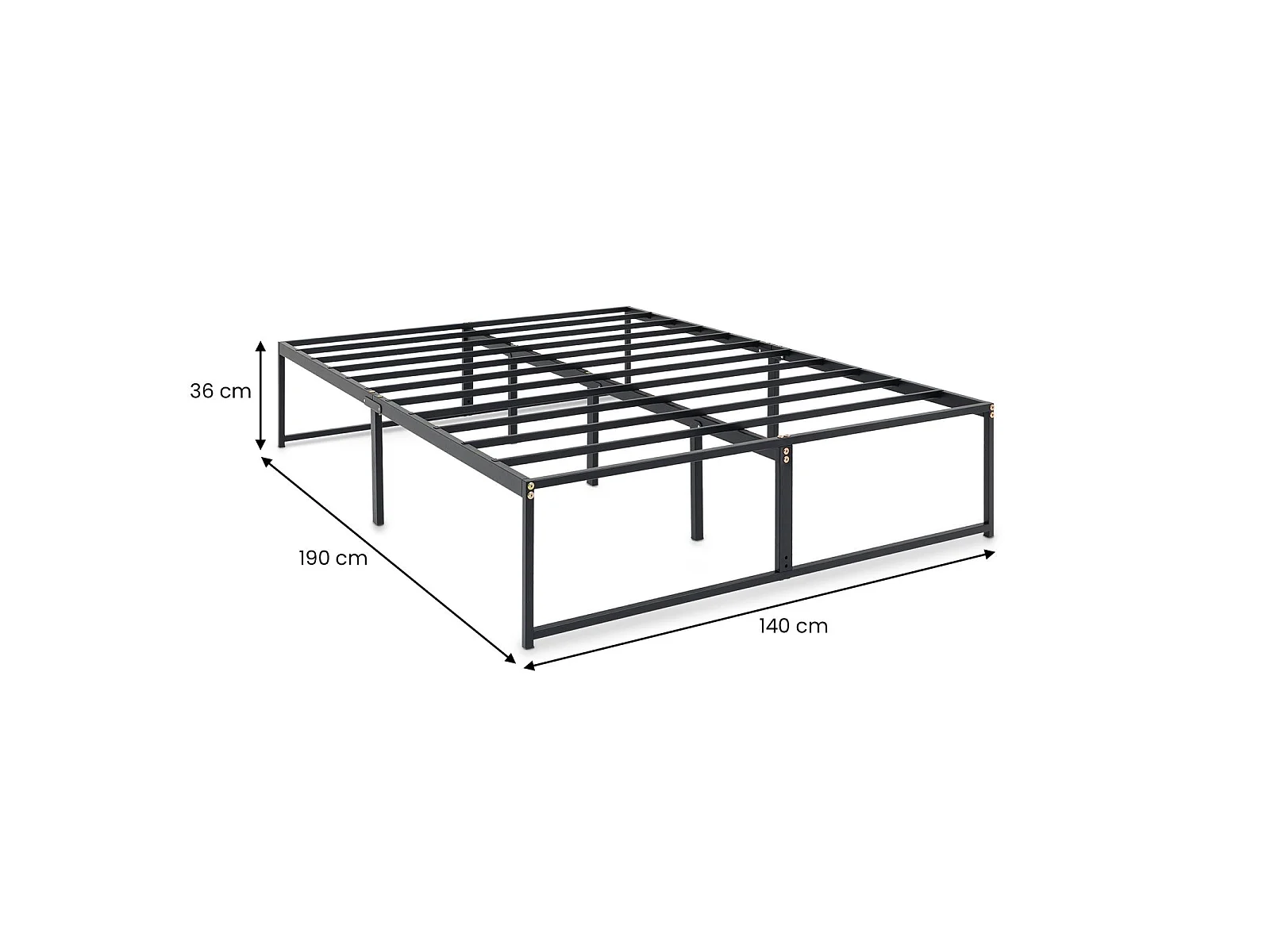 Lit Double SOVE, 140 x 190 cm, Noir, Structure en Métal, Cadre Renforcé, Sommier Intégré, Style Industriel Minimaliste
