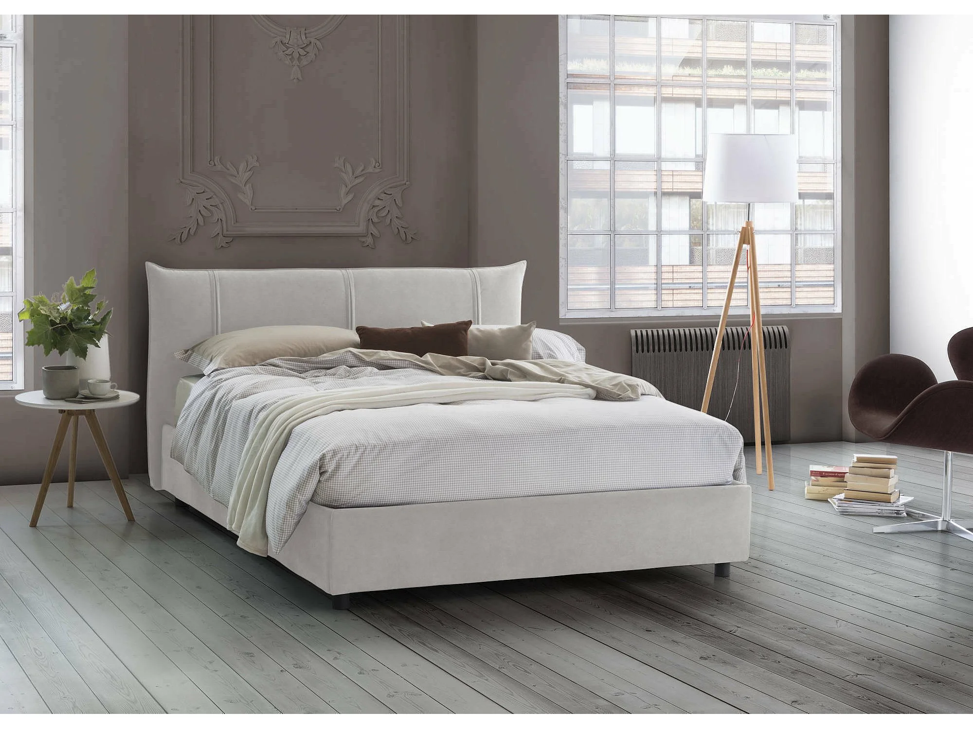 Lit double Stella, Lit coffre avec revêtement en tissu, 100% Made in Italy, Ouverture frontale, adapté pour matelas 160x200 cm, Blanc