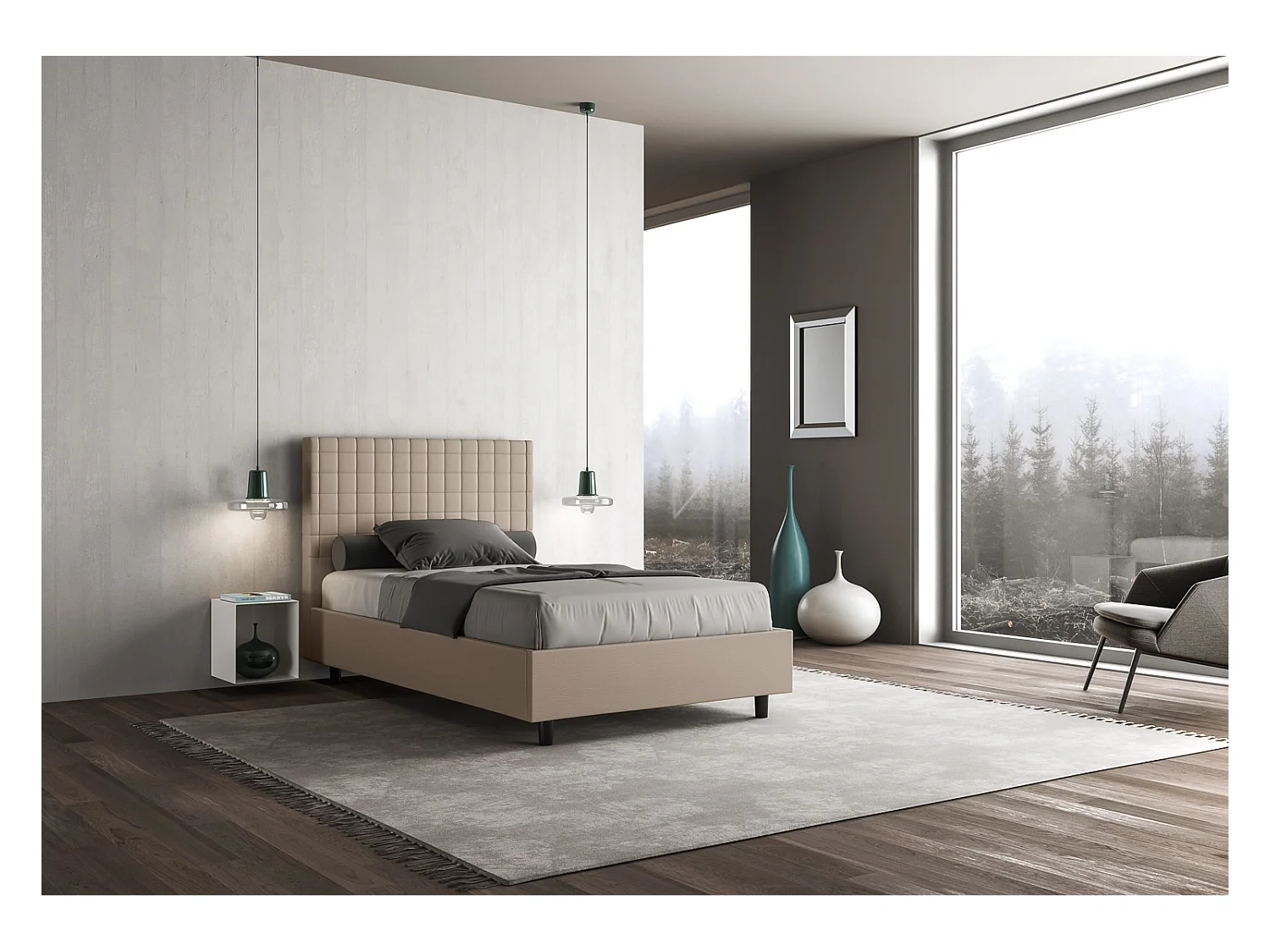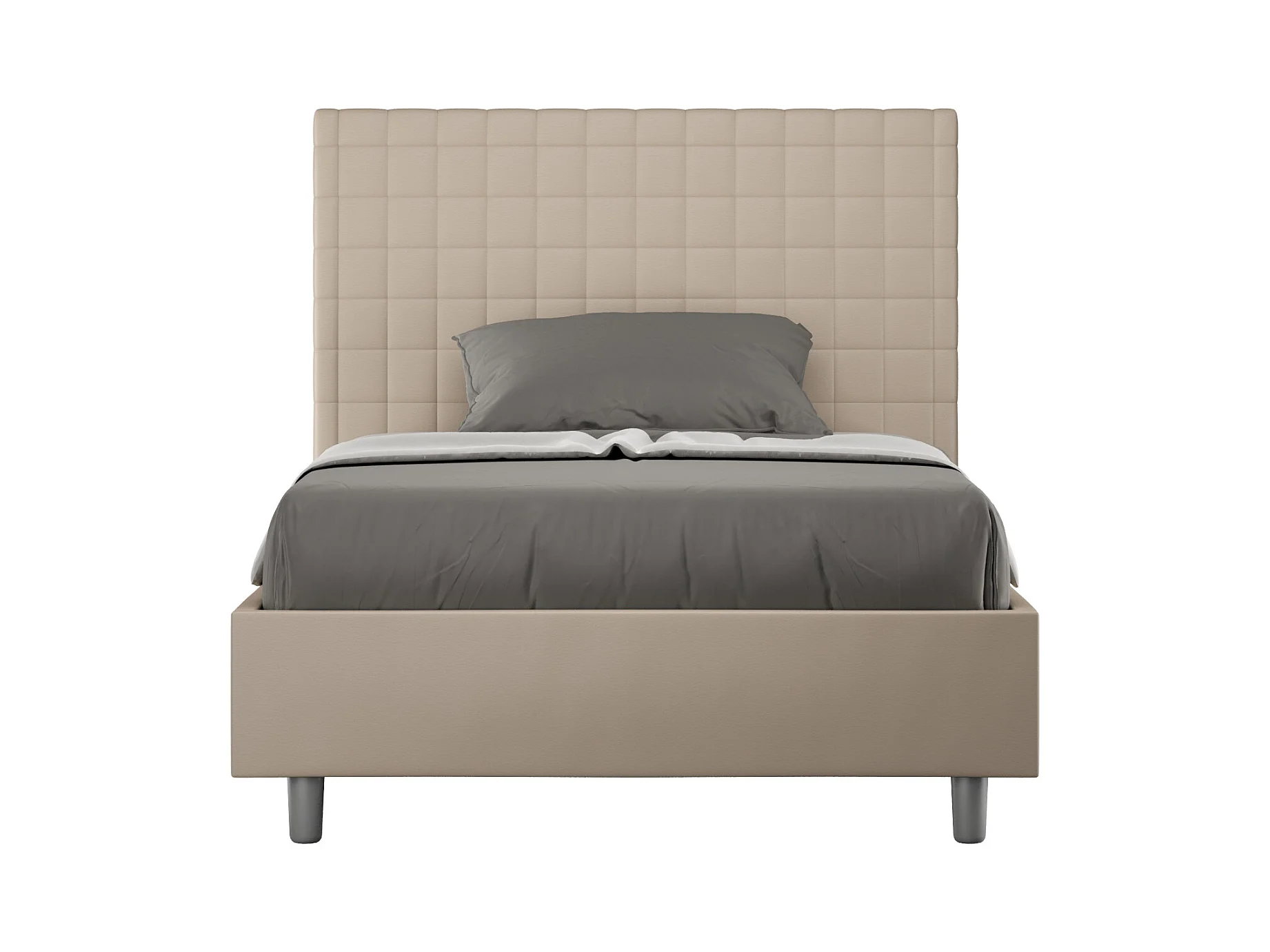 Lit avec sommier rembourrée 140x190 similicuir taupe Sunny